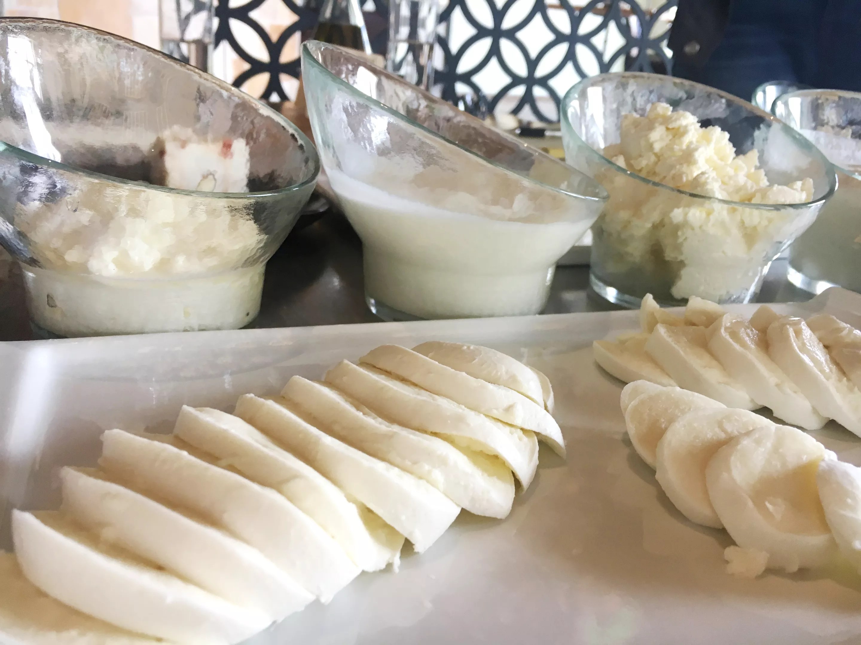 A sampling of fresh Italian cheeses being made by Alex Liberati and Paolo Bartolomucci.