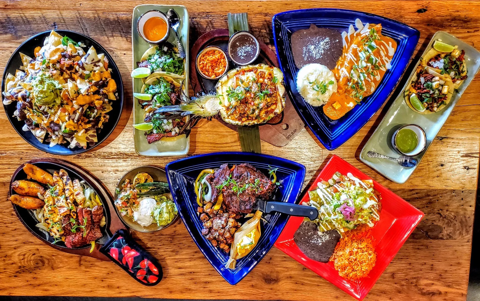 With four kids at home in Aurora, Quintana knew that had to keep going…somehow, somewhere. At the end of 2020, he met with the management of the Southlands retail and entertainment development, and soon signed a lease. He opened his new restaurant, Sazón, on March 1. It’s “a modern Mexican and Latin experience,” he says. “It’s experience that we want to create. I really like to get to know our locals and customers and teach our staff that our regulars are our VIPs.”