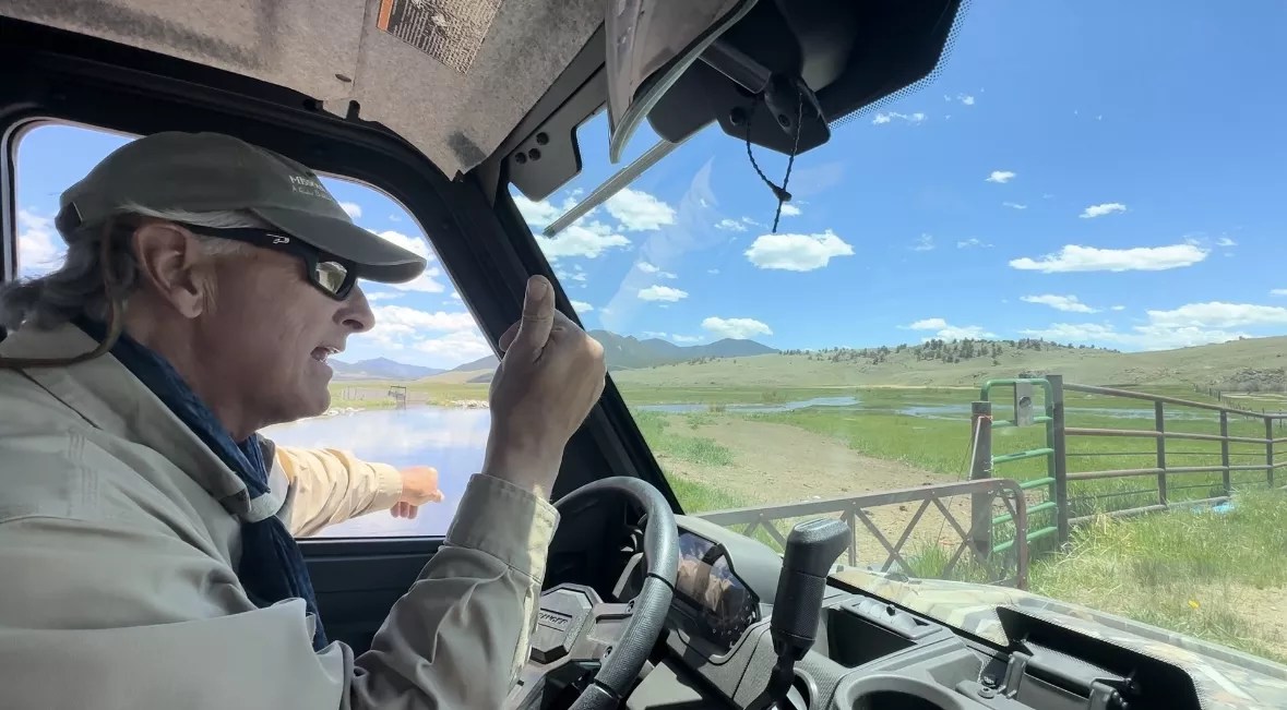 Dave Gottenborg, land steward and co-owner of Eagle Rock Ranch, points out one of many fish ladders along a stretch of Tarryall Creek.