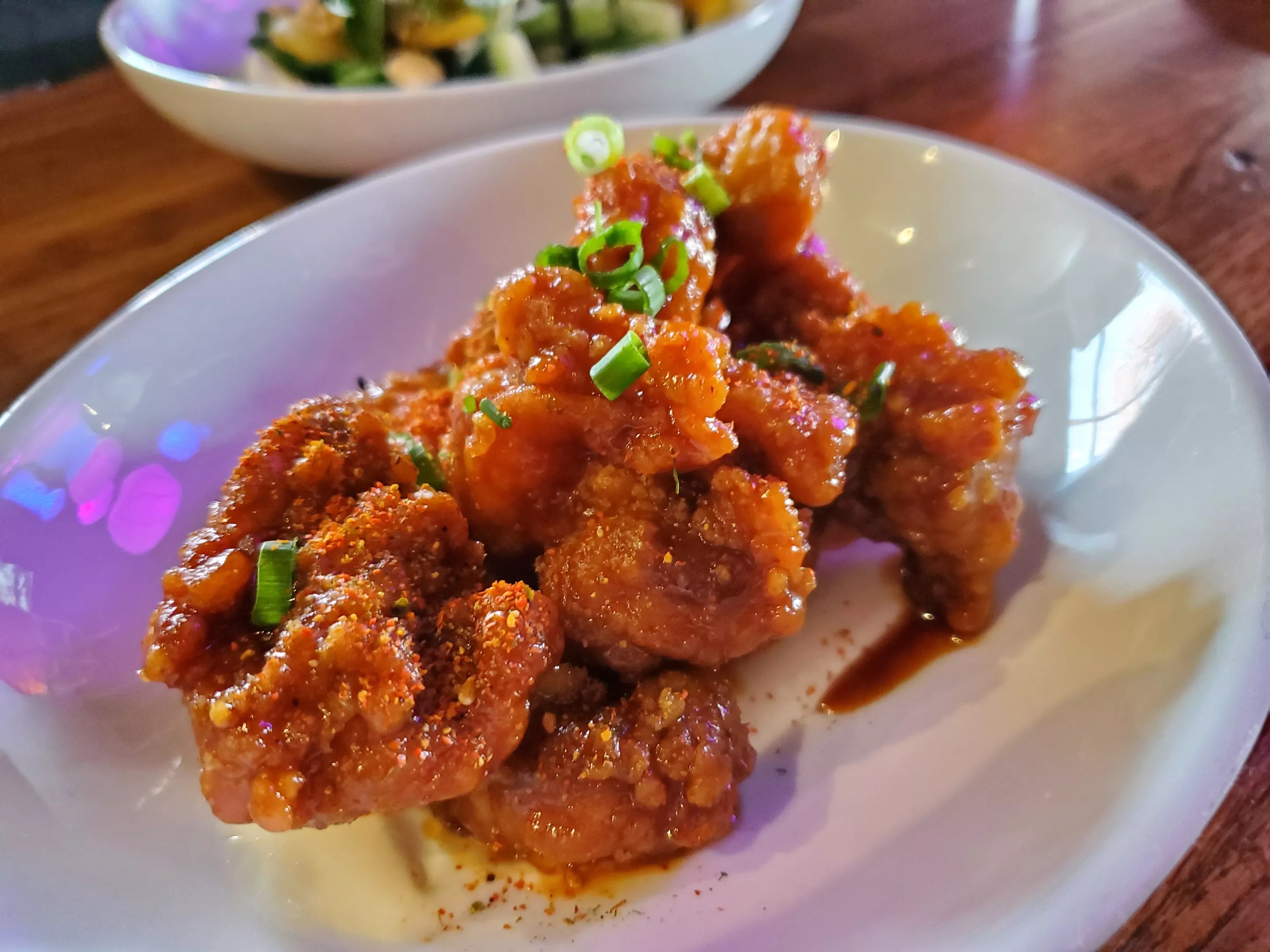 “We’re trying to do an elevated, fine-dining take on a lot of things, but everyone loves fried chicken,” Chris says, referring to the karaage (Japanese fried chicken) on the menu ($10). While takes on fried chicken are everywhere right now, this one is a standout. It has a super-crisp coating with a light, sweet and slightly spicy chile glaze, but the real kicker is the yuzu aioli underneath, which adds a touch of creamy brightness.