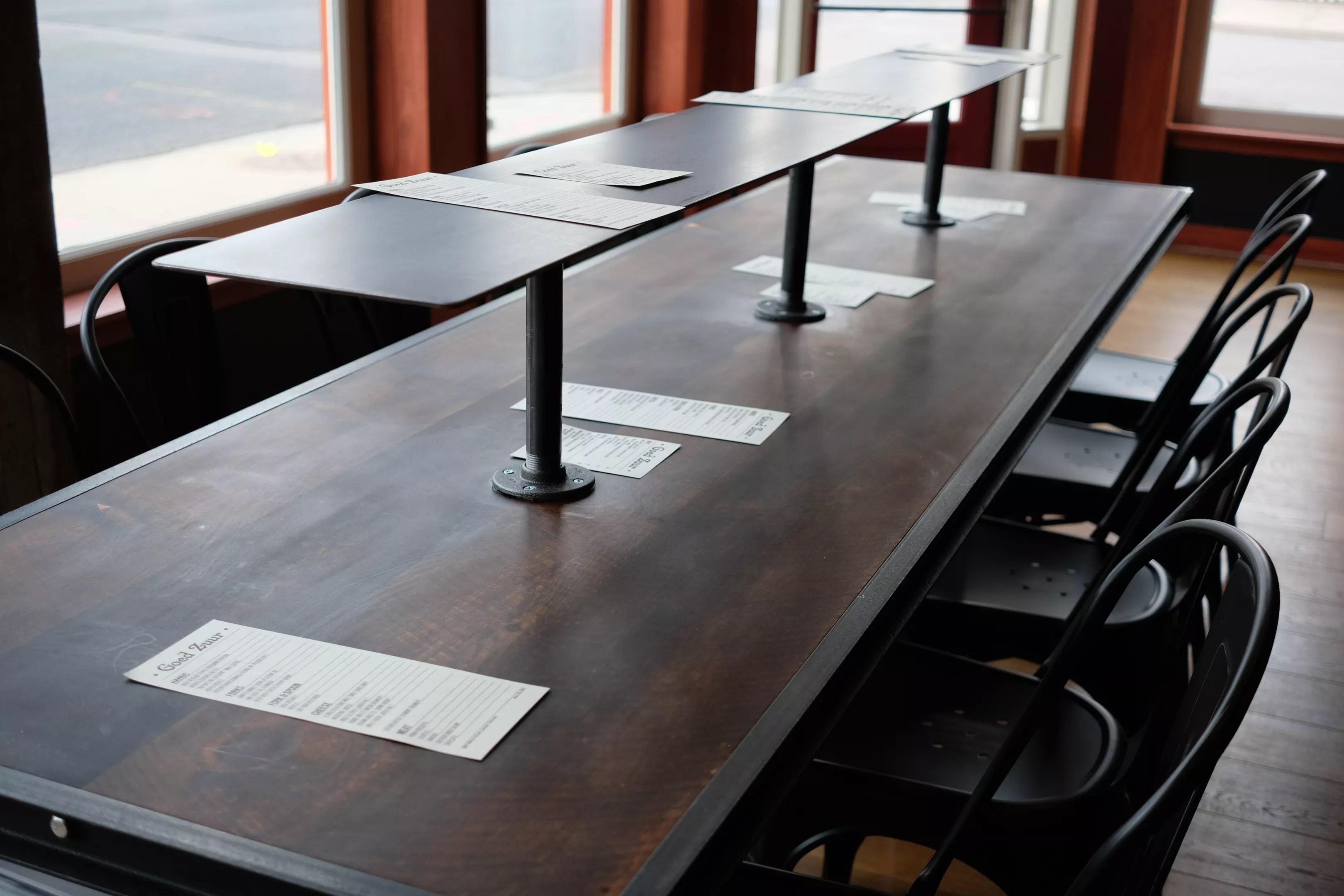 Attention to detail at Goed Zuur includes tables with an elevated shelf for meat and cheese.