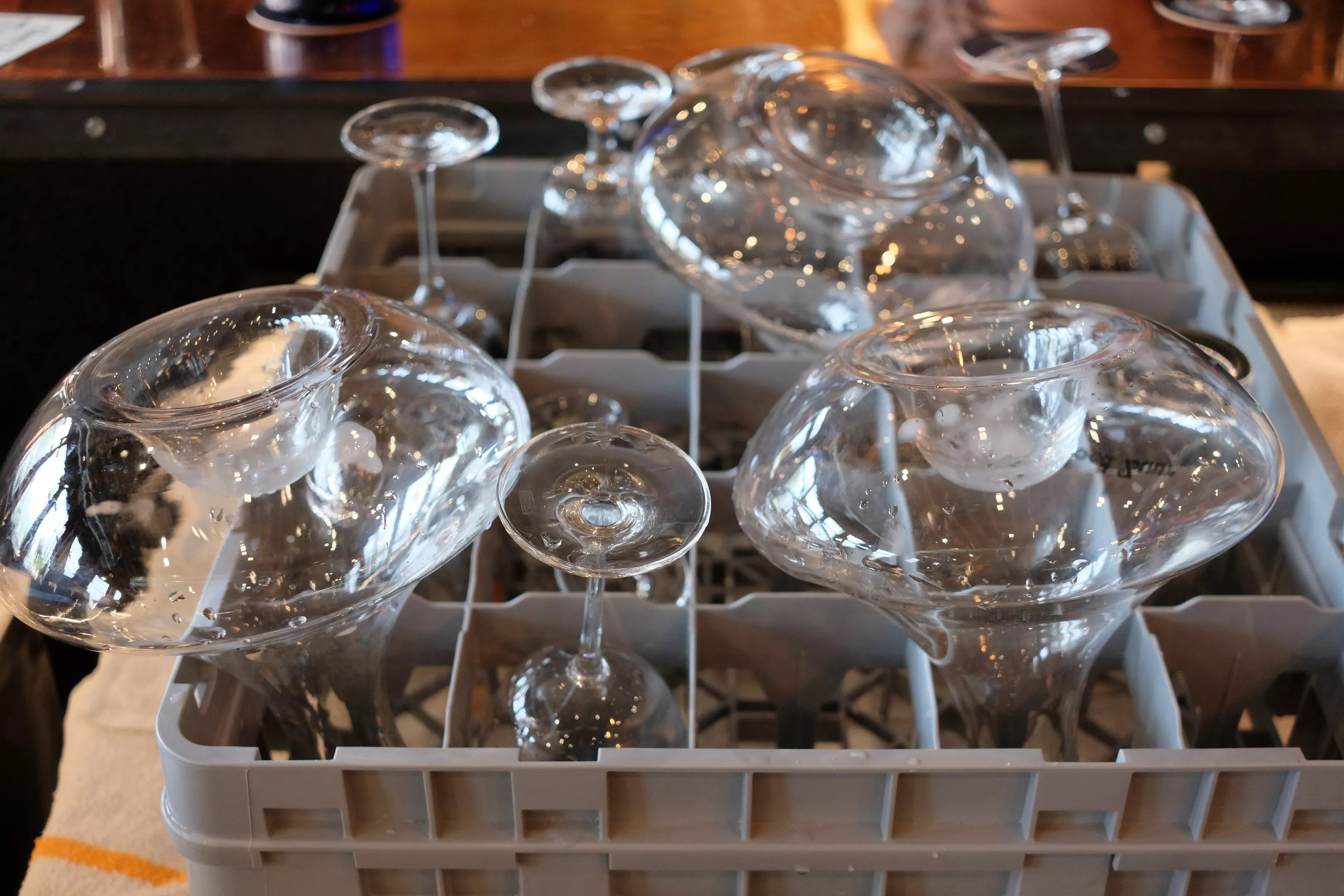 It’s not every day you see multiple decanters in a dish rack.