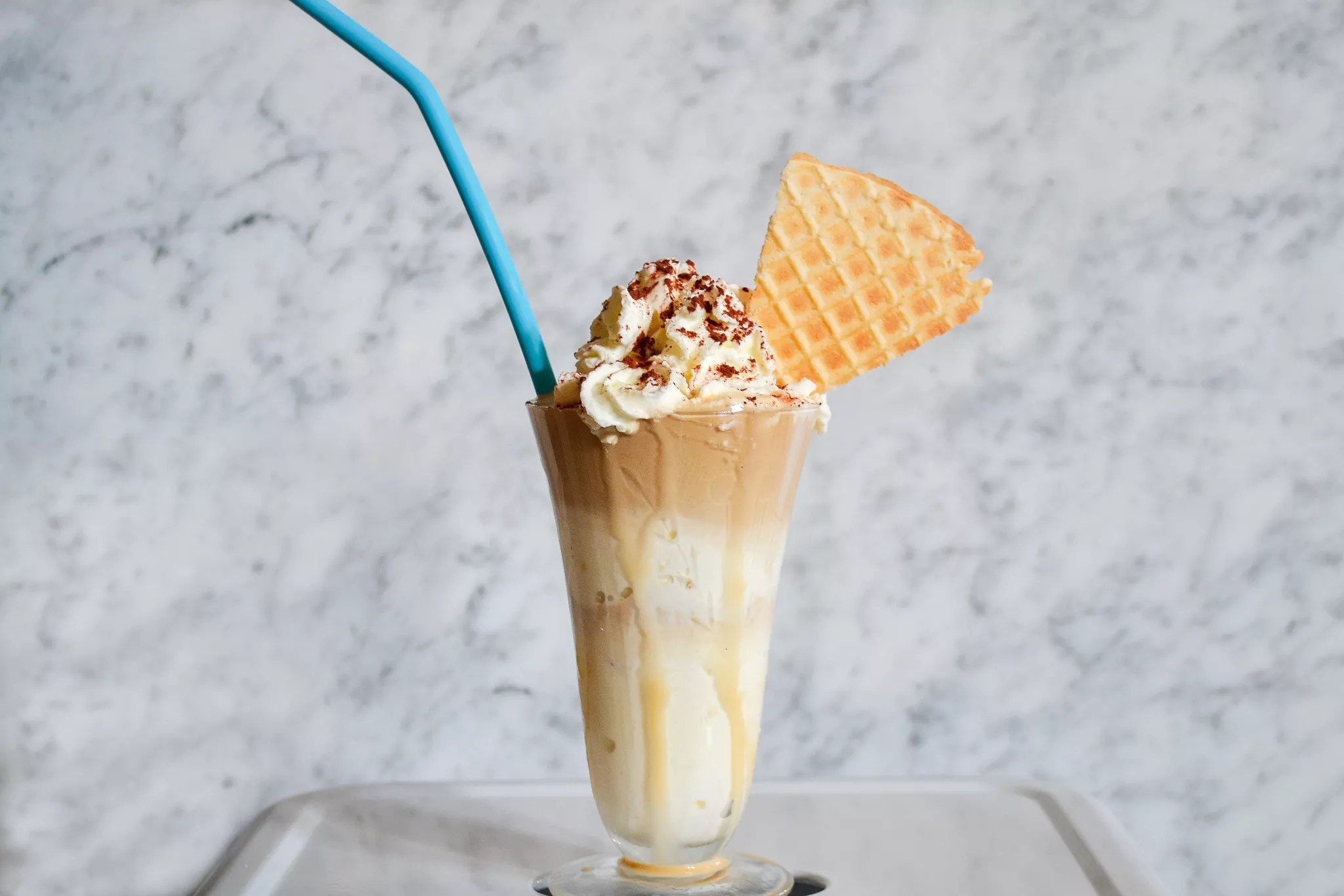 Eiskaffee specializes in cold-brew coffee topped with vanilla ice cream, grated chocolate and whipped cream.