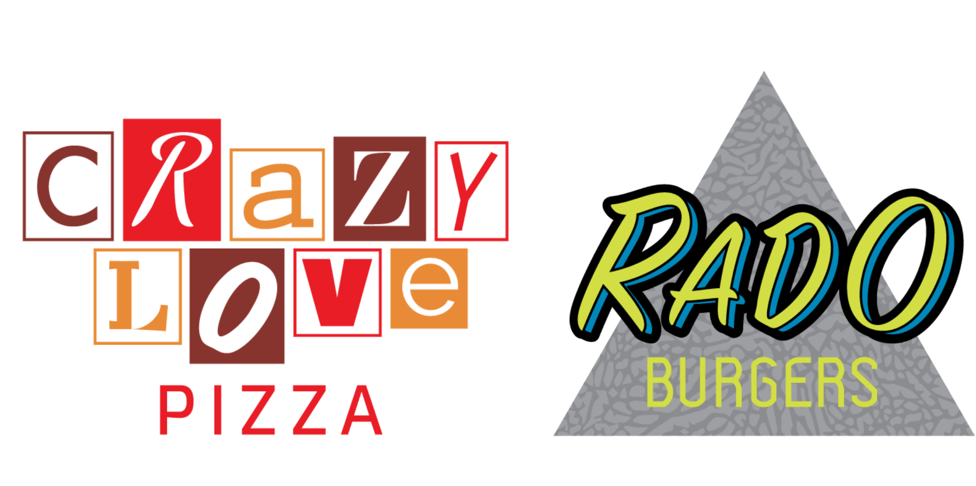 The logos for new Troy Guard concepts Crazy Love Pizza and Rado Burgers.