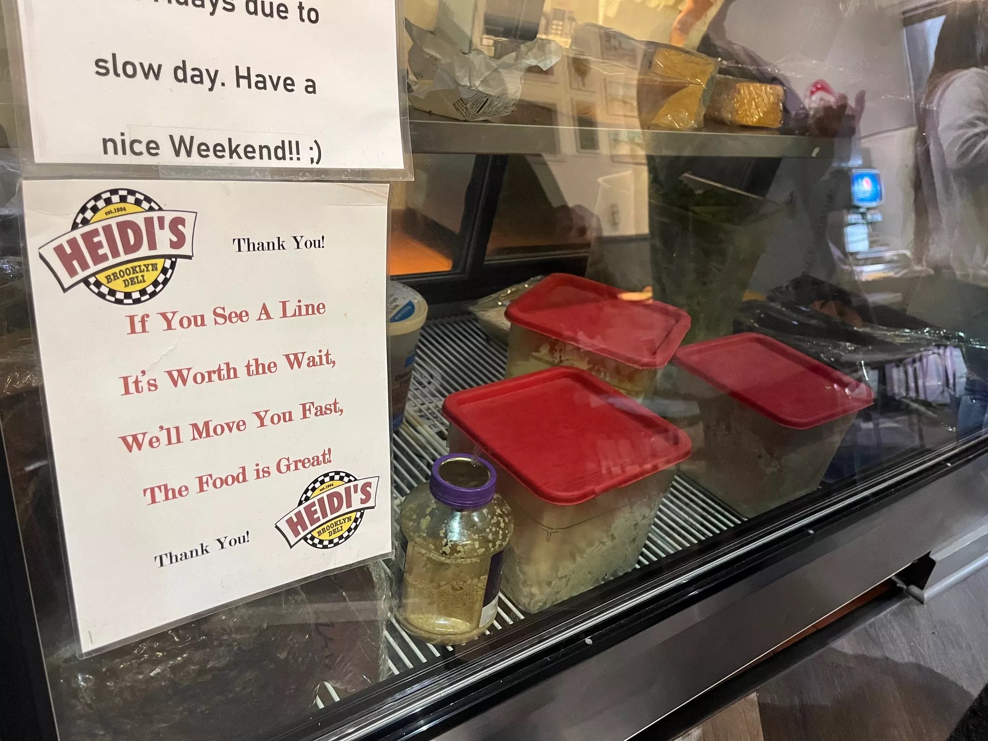 At lunchtime, the line at Heidi’s Brooklyn Deli is always long, but it moves fast.