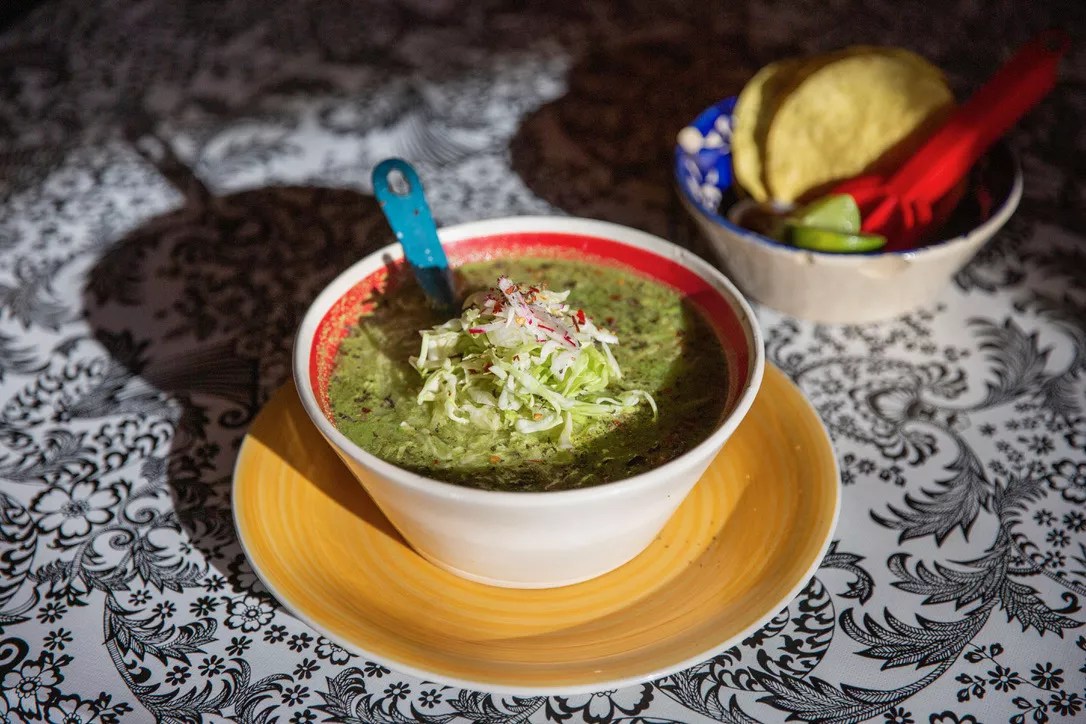 But Avila saw the absence of something else: pozole, with its complex flavors and Indigenous ingredients, simmered into a concentrated centuries-old broth. Avila knew that pozole required nixtamalized maiz, but after that, it goes right into the soup rather than the molino for masa. It was an untapped platform to showcase his deep appreciation for maiz, and in 2021, he launched his own powerhouse restaurant, La Diabla, with a tight focus on pozole and handmade masa.