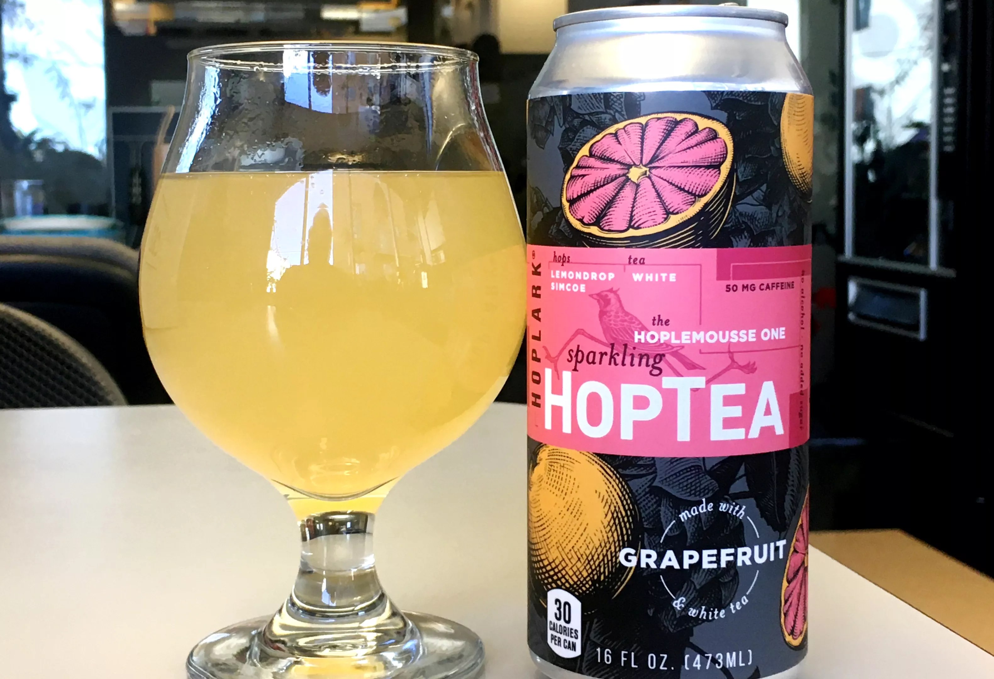There are currently six different Hoplark flavors, with names reminiscent of Friends episode titles: the Green Tea One, brewed with Mosaic hops; the White Tea One, made with white tea and Lemondrop and Simcoe hops; the Hoplemousse One, which adds grapefruit to the White Tea One; the Calm One, a caffeine-free chamomile tea with Citra hops; and the Lemony One and the Really Hoppy One, both brewed with Simcoe and Citra hops and black tea. The lemon and grapefruit versions contain thirty calories in each 16-ounce can, but the others are all calorie-free.