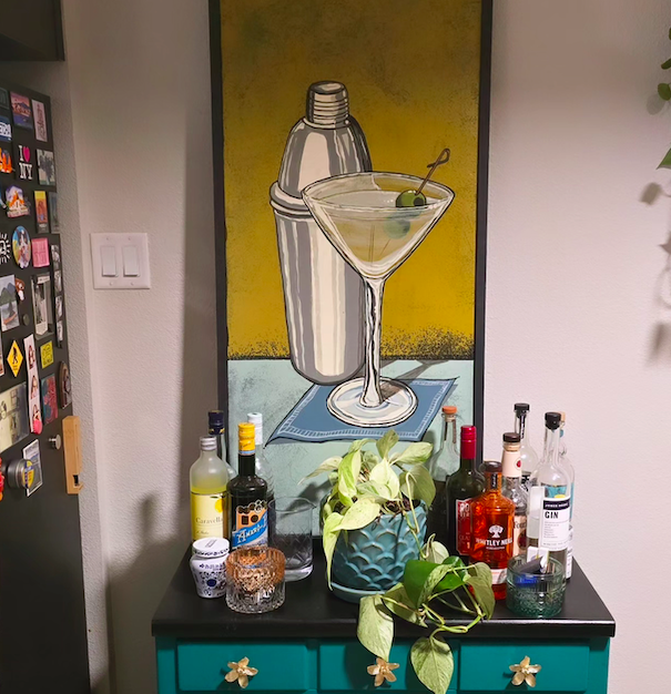 I’m a big fan of this year’s cover art, created by painter Anthony Hecker. He works with 5280 Art Concepts, a one-woman operation that displays art for sale in a few places around town, including one of my favorite restaurants, Sam’s No. 3. That’s where I was dining when I spotted a large martini painting that I immediately decided I needed to own. After taking it home, I connected with Hecker, who created a new boozy painting for this issue.