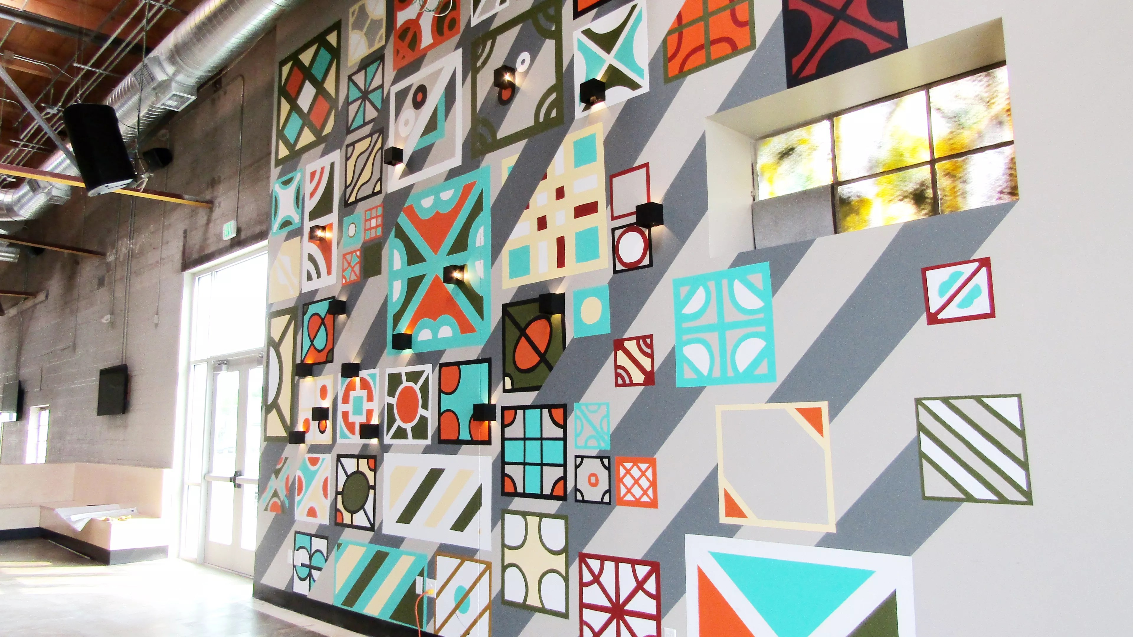 Because the project is so big, Riley says it will also function as a community gathering place, with smaller areas that can be rented for private events or with the entire space available for buyouts. A stage area, backed by a floor-to-ceiling mural, has been wired for sound and will host music, comedy and other entertainment.