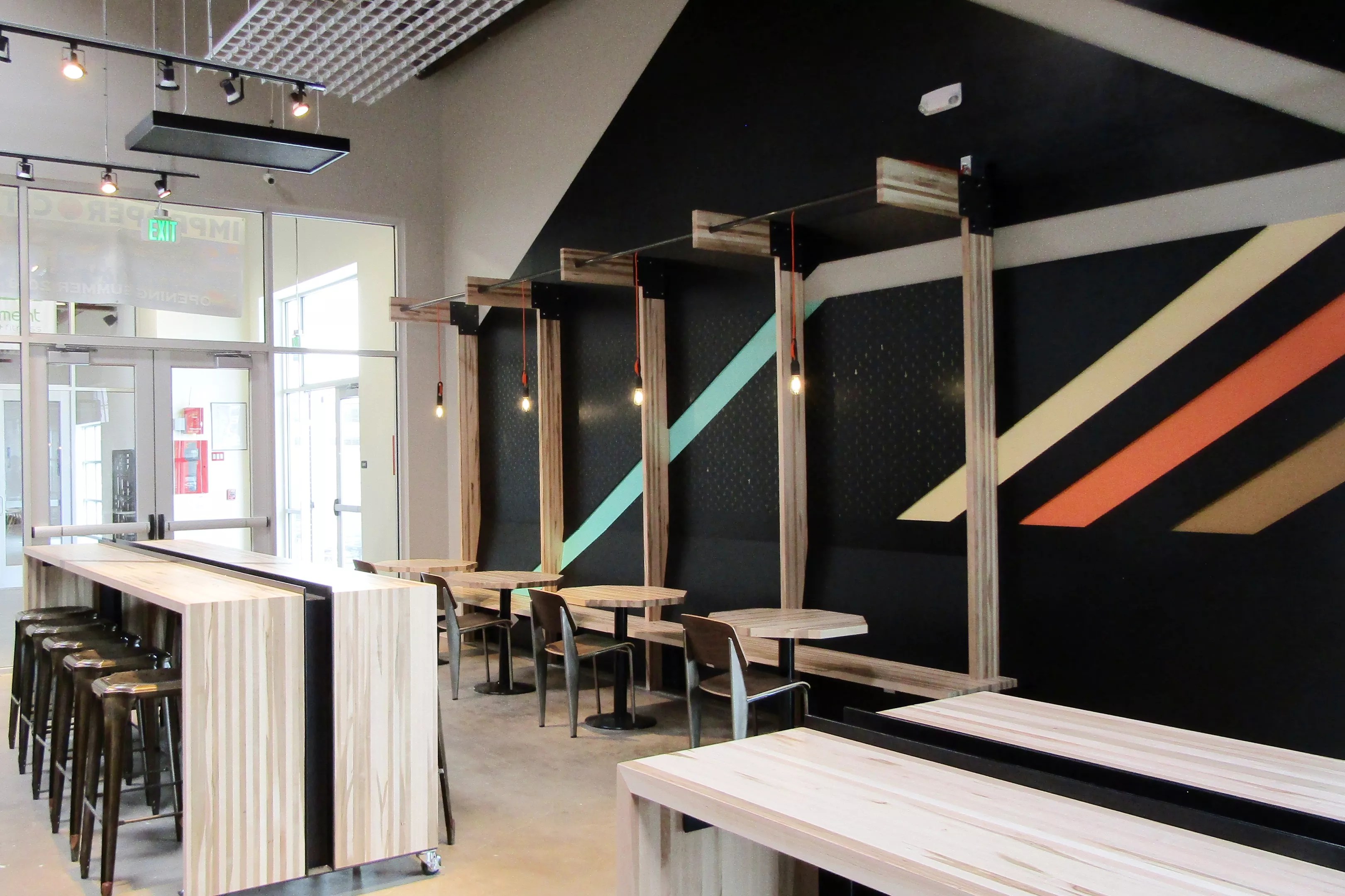 Those who have been to the Rayback Collective in Boulder will recognize the concept: Justin Riley and Hank Grant are the founders behind both, and with Improper City, they’ve stuck fairly close to their original model, only on a larger scale. Inside, there’s a 75-foot bar backed by a row of 36 beer and cider taps (with an additional eight handles for batched cocktails and four for wine), widely spaced tables and seating areas, a stage for live entertainment, private areas for gatherings and meetings, a mezzanine built for up to 75 people and a coffee bar to fuel things during the day.