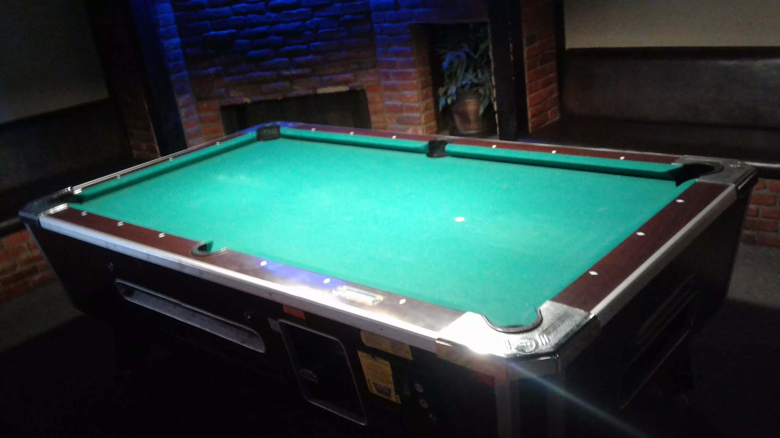 The fanciest spot in the bar, in my opinion, is the pool table room, complete with fireplace and brick walls.