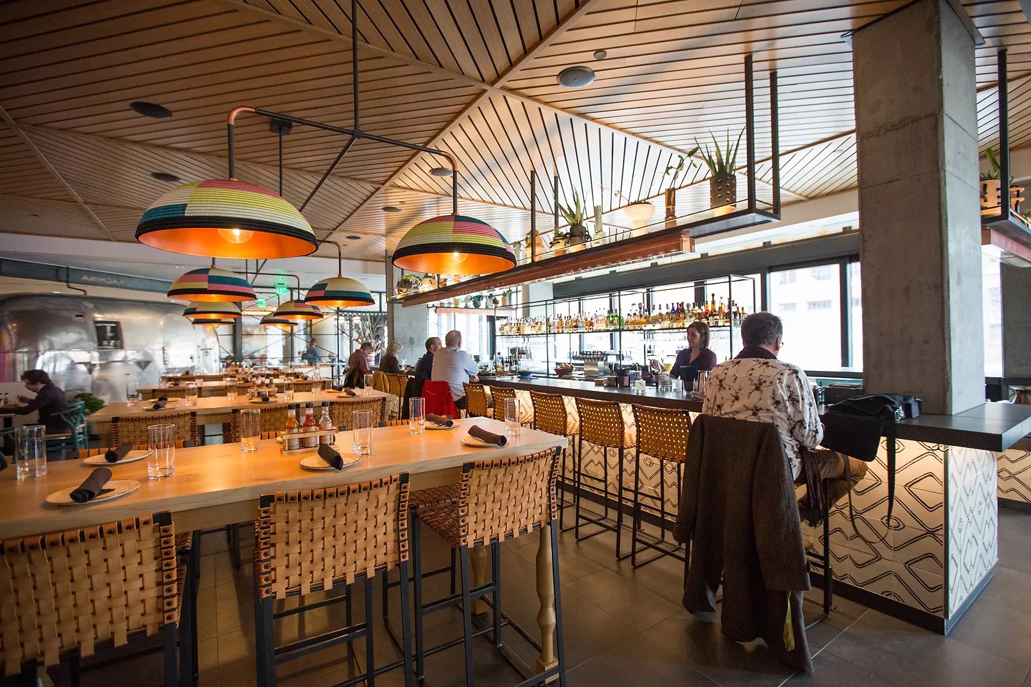 Between the restaurant and the lobby of the Maven, there’s a reconditioned Airstream trailer that will soon serve food and cocktails to walk-up customers wanting a more casual experience; right next to that, there’s an indoor “patio” that extends the Southwestern vibe into the hotel space.