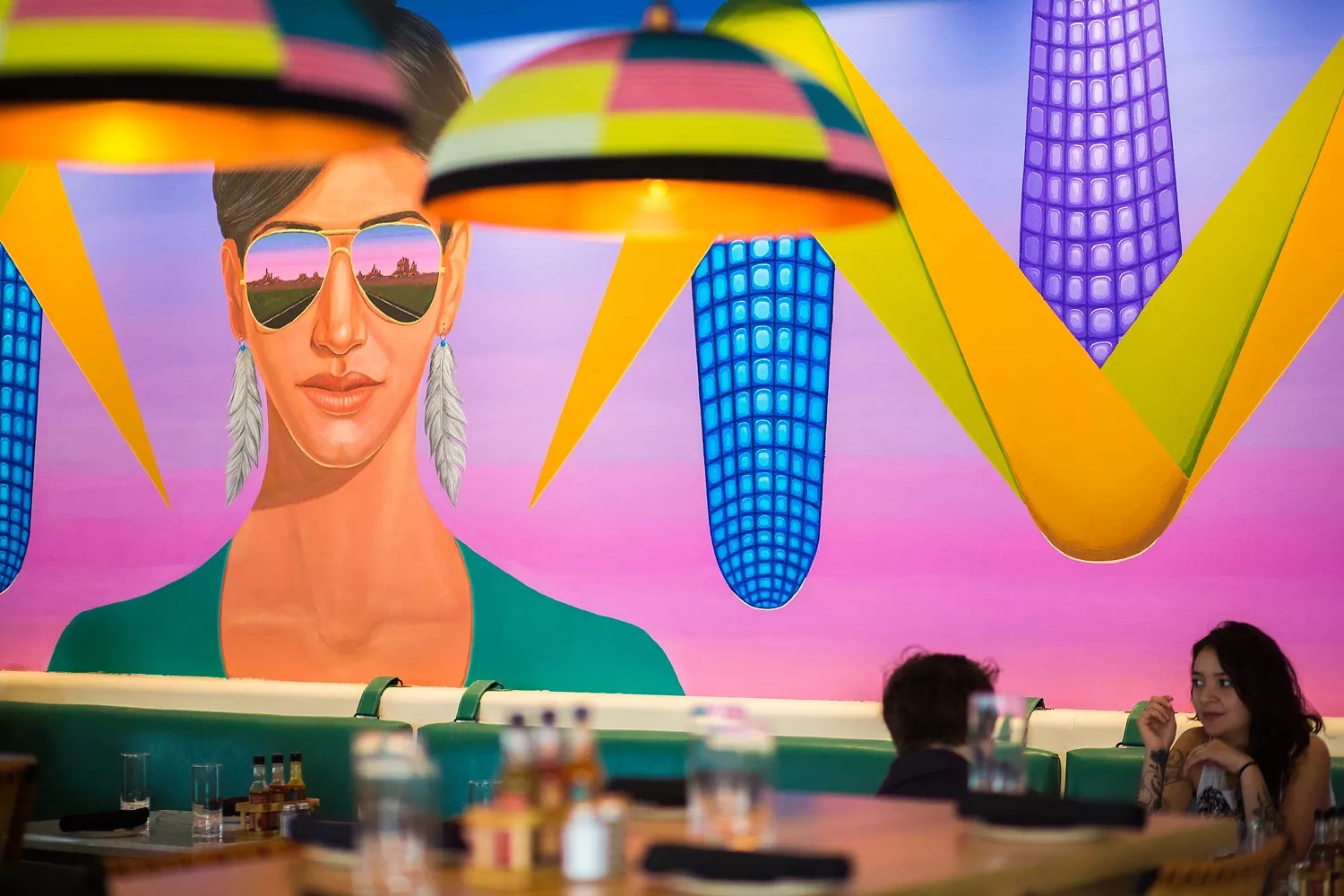 To match the Southwestern spirit of the menu, the decor – executed by Creme Design – and details have a distinct local flair. A large mural by artist Emanuel Martinez has a woman in reflective sunglasses overlooking the main dining room, while smaller details like hand-tooled leather accessories (cocktail menu binders, satchels for waitstaff and coozies for margarita glasses) were made by Valentich, a Denver company specializing in handmade leather and fabric gear. “It all speaks to the DNA of our restaurant, the adventurousness,” says San Martin.