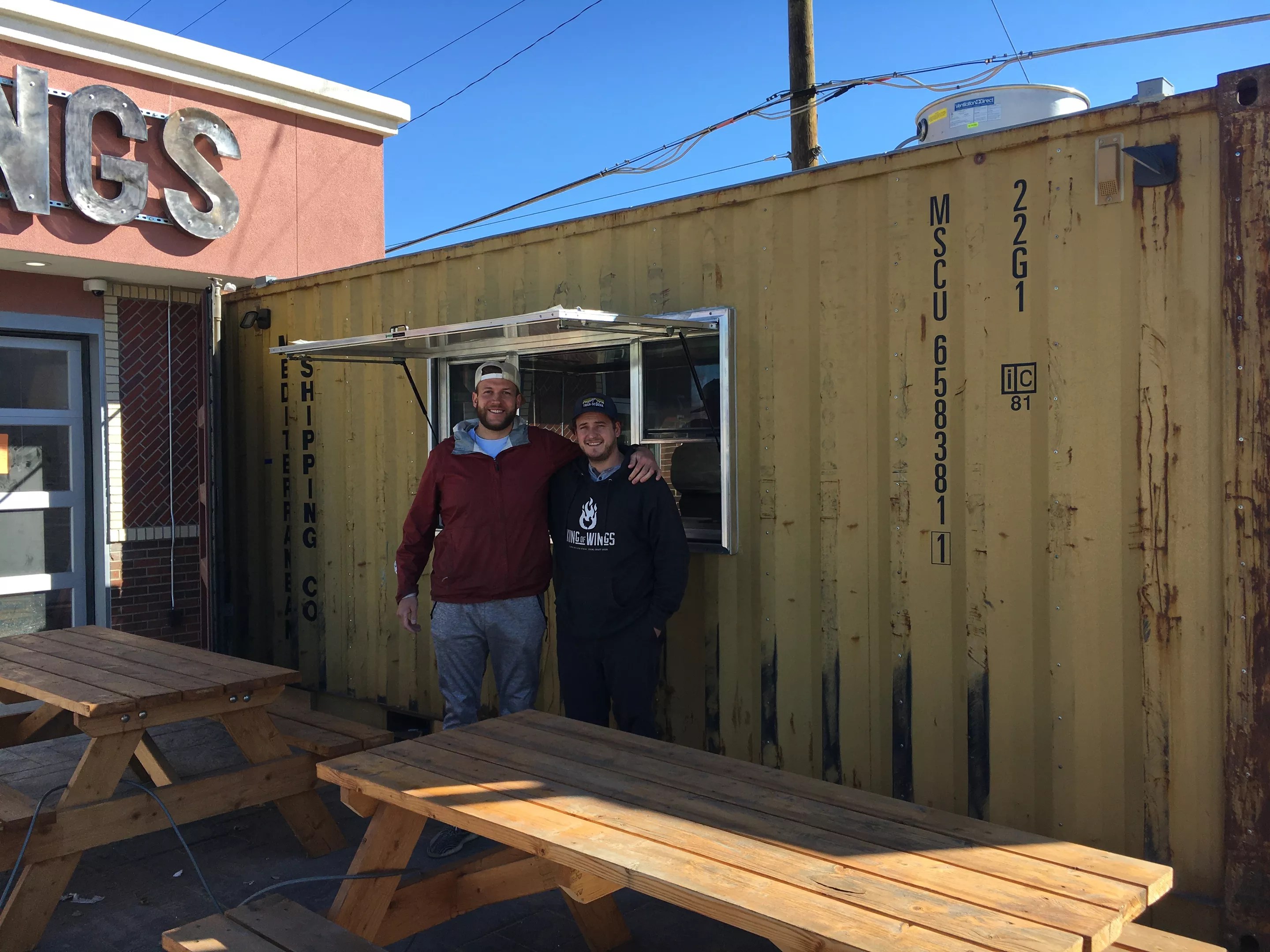The King of Wings has a shipping container kitchen, which will soon be clad in wood siding.