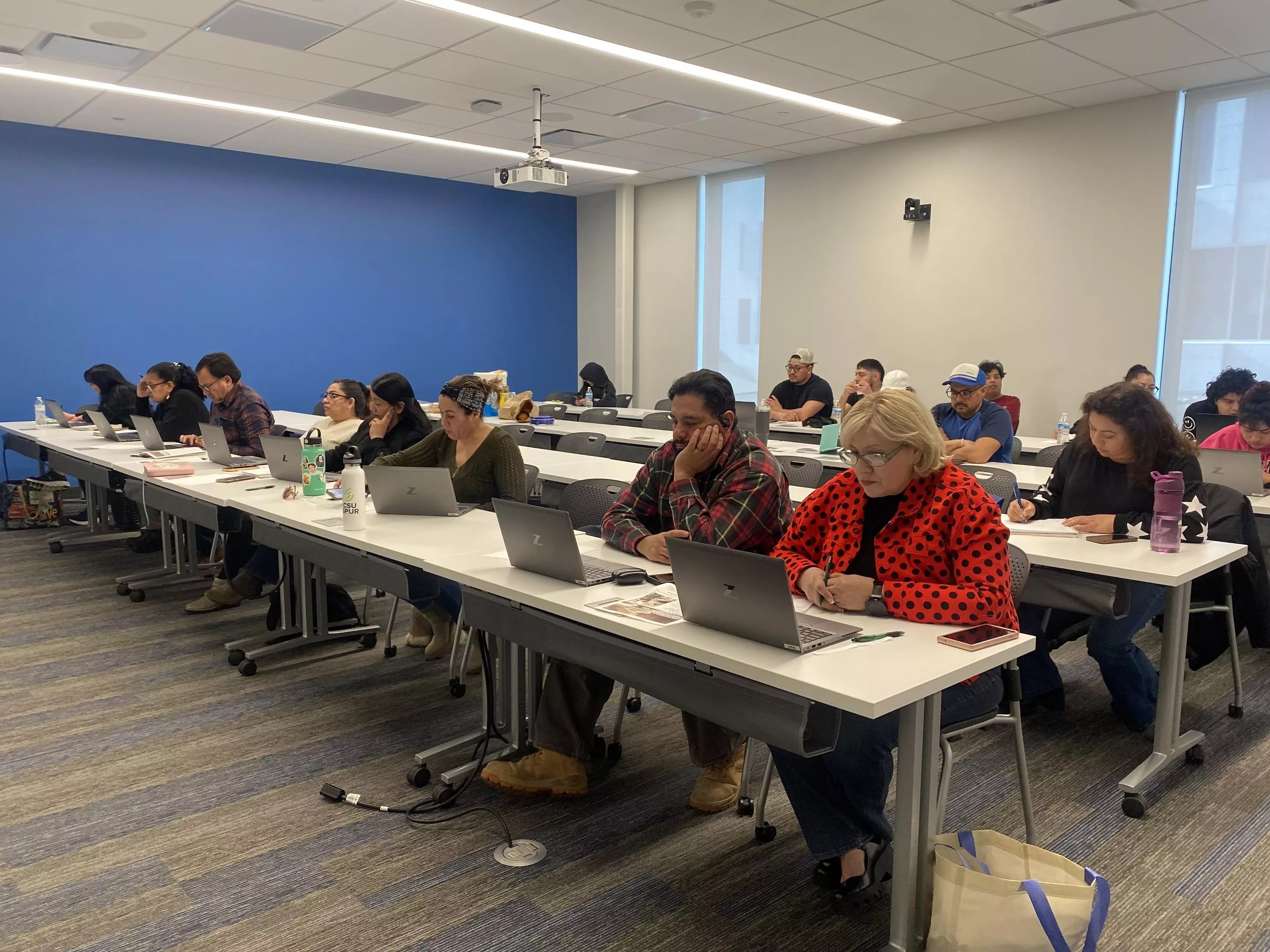 Sabor Comunitario program participants taking their ServSafe exam, which covers food safety principles.