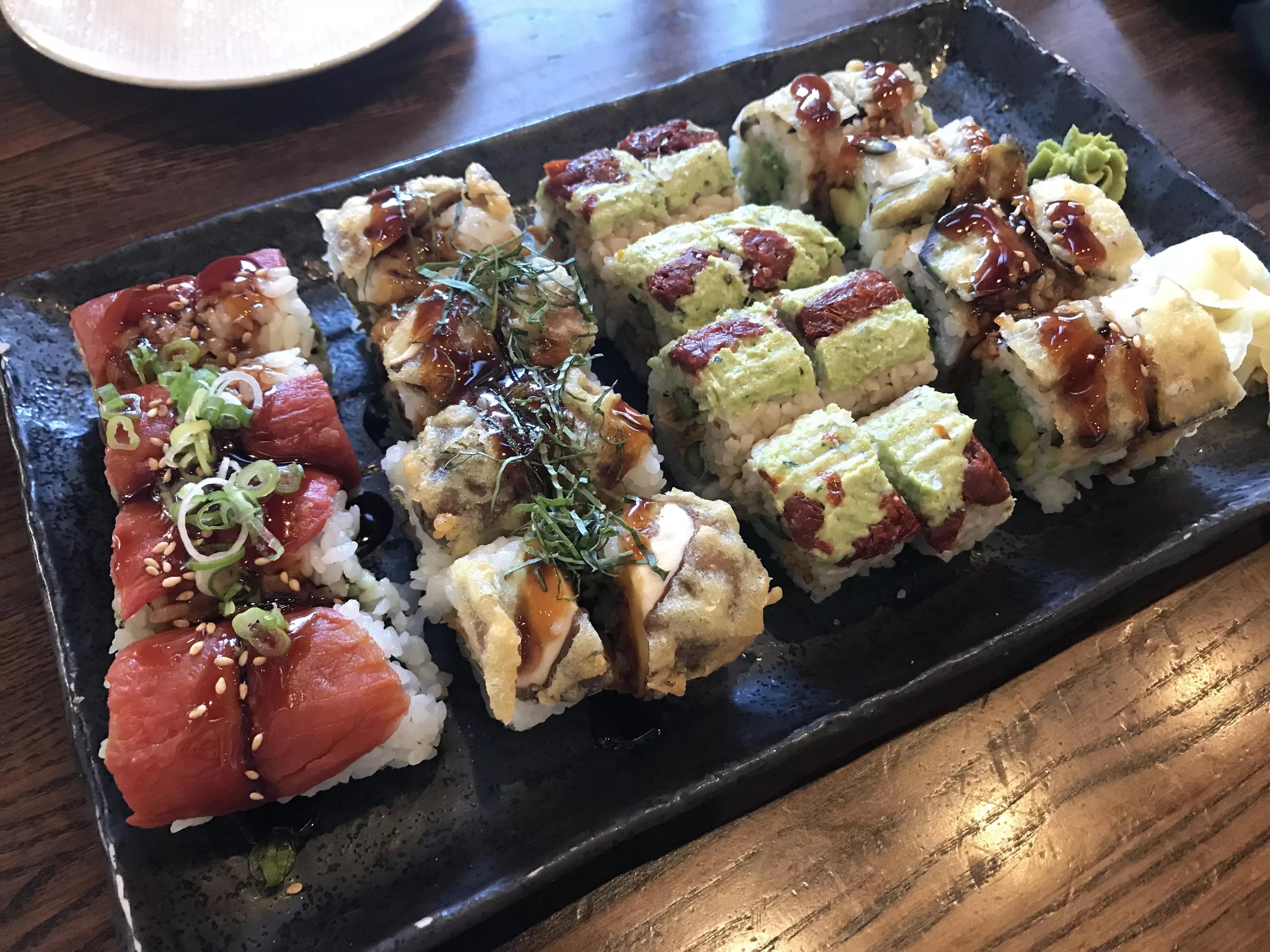 Many of the rolls add creative elements beyond being plant-based. The Cowgirl is made with tempura-fried pickles, sriracha-fried onion rings, vegan mayo, barbecue paper and tonkatsu sauce. And the Thai Hippie uses crispy fried tofu as the main protein, with mint, cilantro, Thai basil, peanut sauce, cucumber, avocado and cashew adding Southeast Asian flavors.
