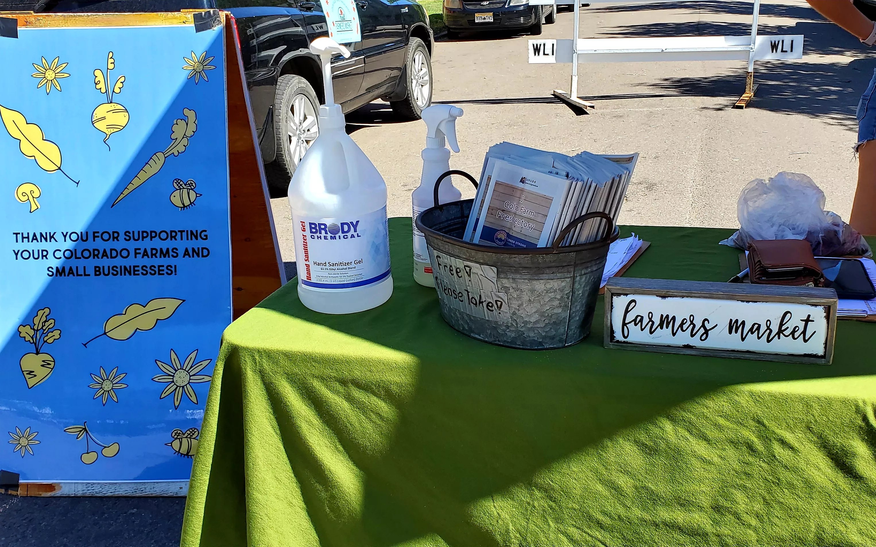 “It’s definitely different, as we are trying to keep one person doing money and one person doing the food,” says Dana Anderson, who was behind the Forte Farms table bagging Palisade cherries and tomatoes for customers. “There’s no more sampling, which is a bummer, because customers like that.”