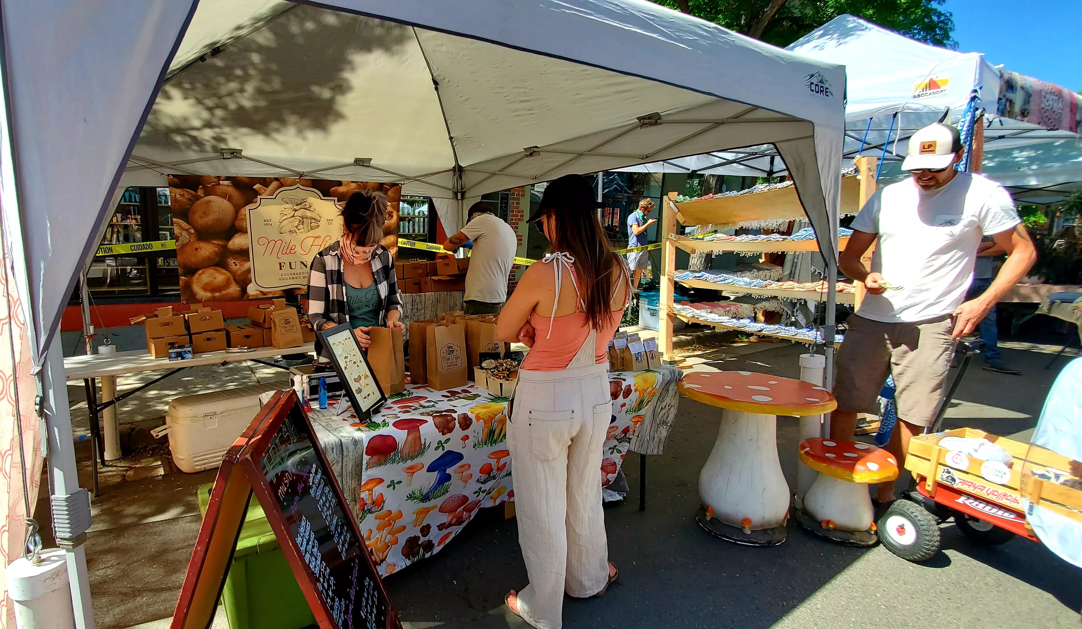 Mile High Fungi‘s Michael Nail also had good things to say about the farmers’ market business, which he felt was just as good as past years. Abe Perez of La Esmerelda, a stand that’s been selling salsas, tortilla chips and burritos for years at local markets, is just happy to see people again and to be out and interacting.