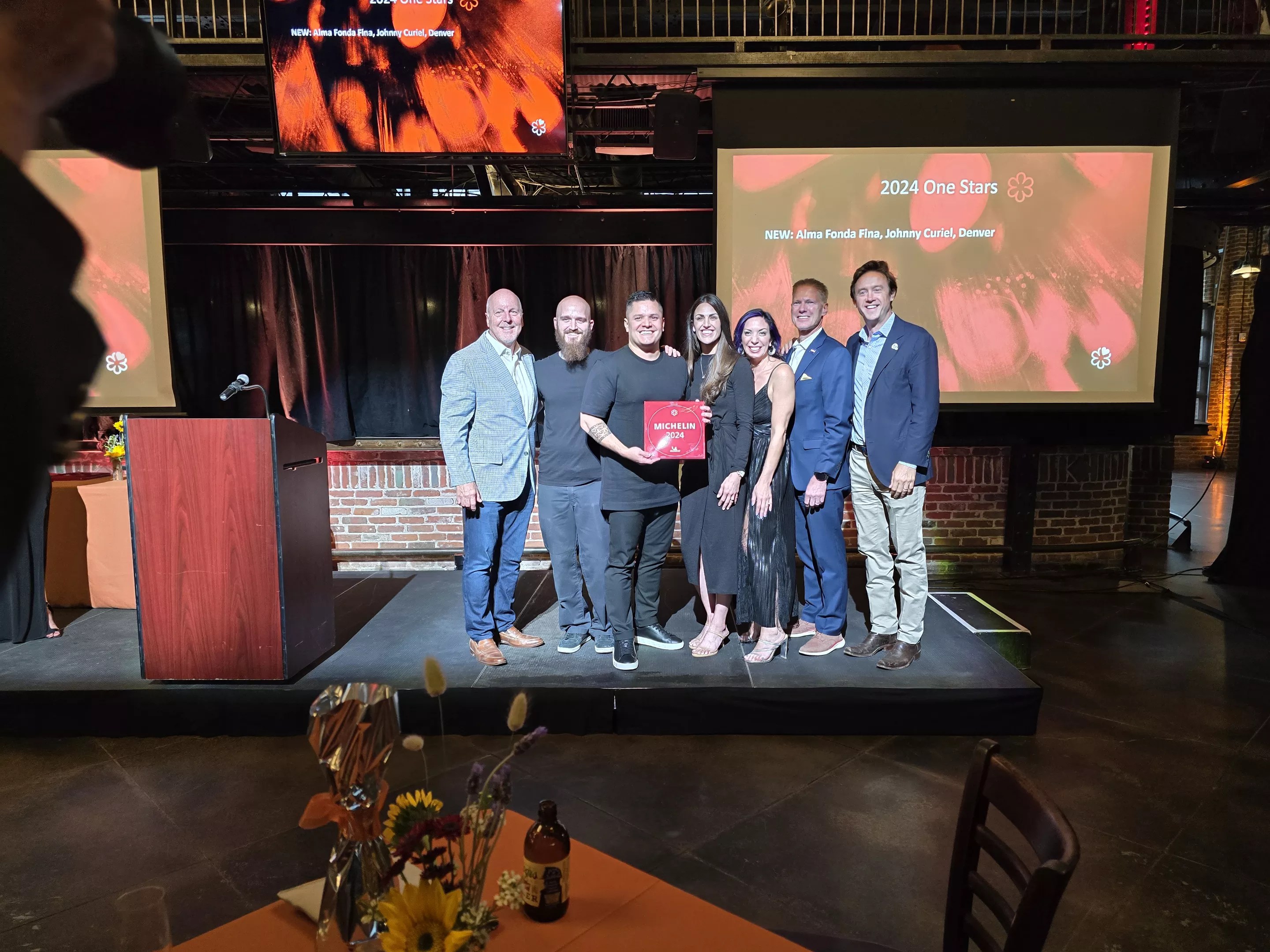 The Alma Fonda Fina team accepting their Michelin star with a cameo from Mayor Mike Johnston.