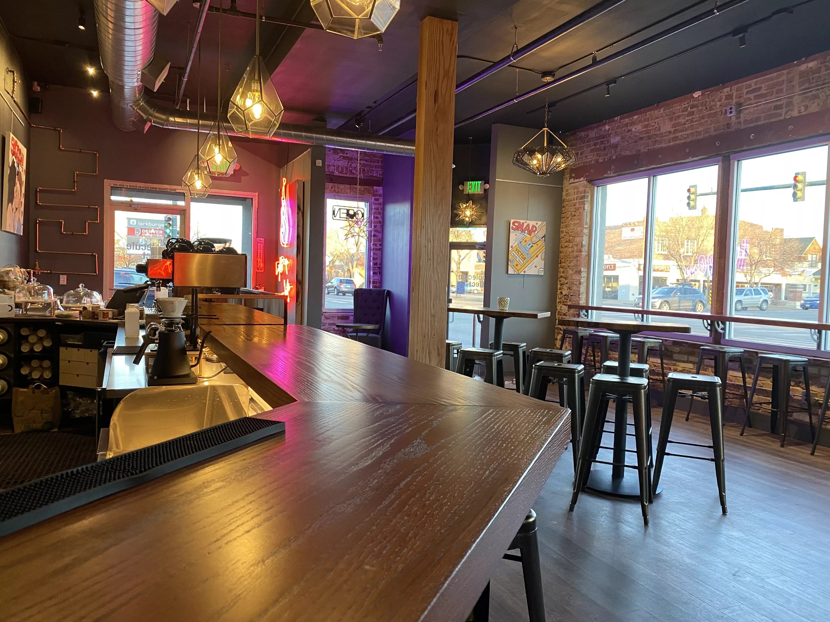 They’ve filled the extra space with comfy furniture as well as high-top tables with stools, many within easy reach of outlets for plugging in and recharging mobile devices. The drinks menu is also expanded; unlike the original Lincoln Park cafe, this Molecule Effect serves pour-over coffee to highlight the light roast of Kaladi’s Redshift, a new product that lends itself well to the third-wave coffee-brewing method. The food menu encompasses prepared sandwiches and salads from Olive & Finch, pastries from Sugar Bakeshop, and a few in-house items such as a meat-and-cheese plate. While the booze menu is small, it includes house cocktails that change on a regular basis, a rotating selection of beers from Denver breweries, and both local and national wines.