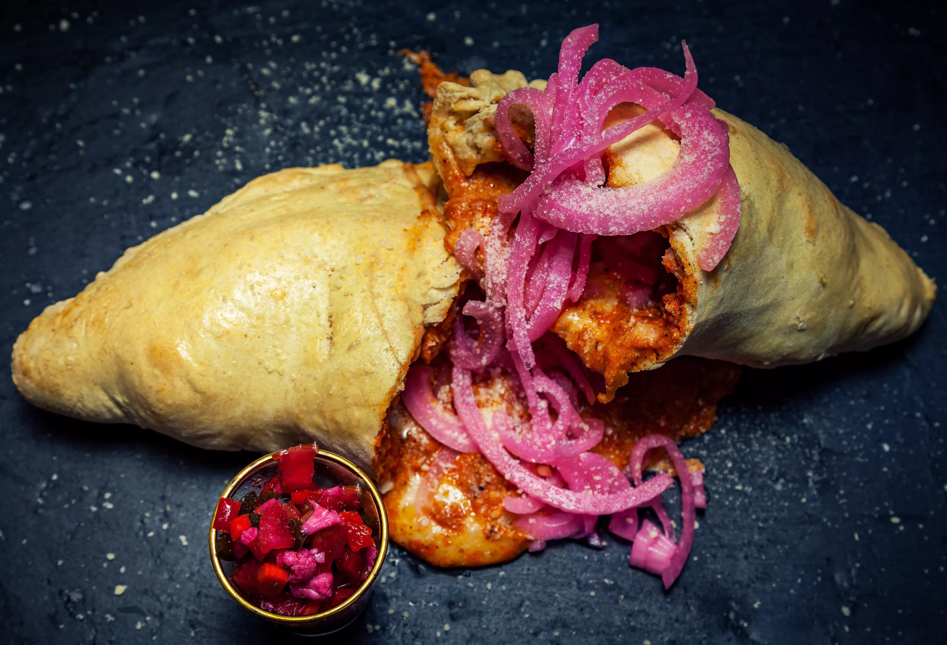 The menu, executed in a commissary kitchen near Colorado Boulevard and East 40th Avenue, will offer Hawaiian classics like loco moco and bento boxes with chicken, ahi tuna poke or marinated skirt steak, along with a few unique items that the two partners brainstormed while appreciating each other’s home-cooking photos. One is a chorizo gravy calzone, taking the Chicago Italian classic and loading it up with queso quesadilla and chorizo gravy, which Mendez says his grandmother used to make for breakfast. There will also be “sweet and savory” mole chicken wings and a mushroom grilled cheese sandwich built on purple bread that Millon and Mendez developed together. The color comes from ube, a purple sweet potato that also gives the bread a light and fluffy texture like potato bread.