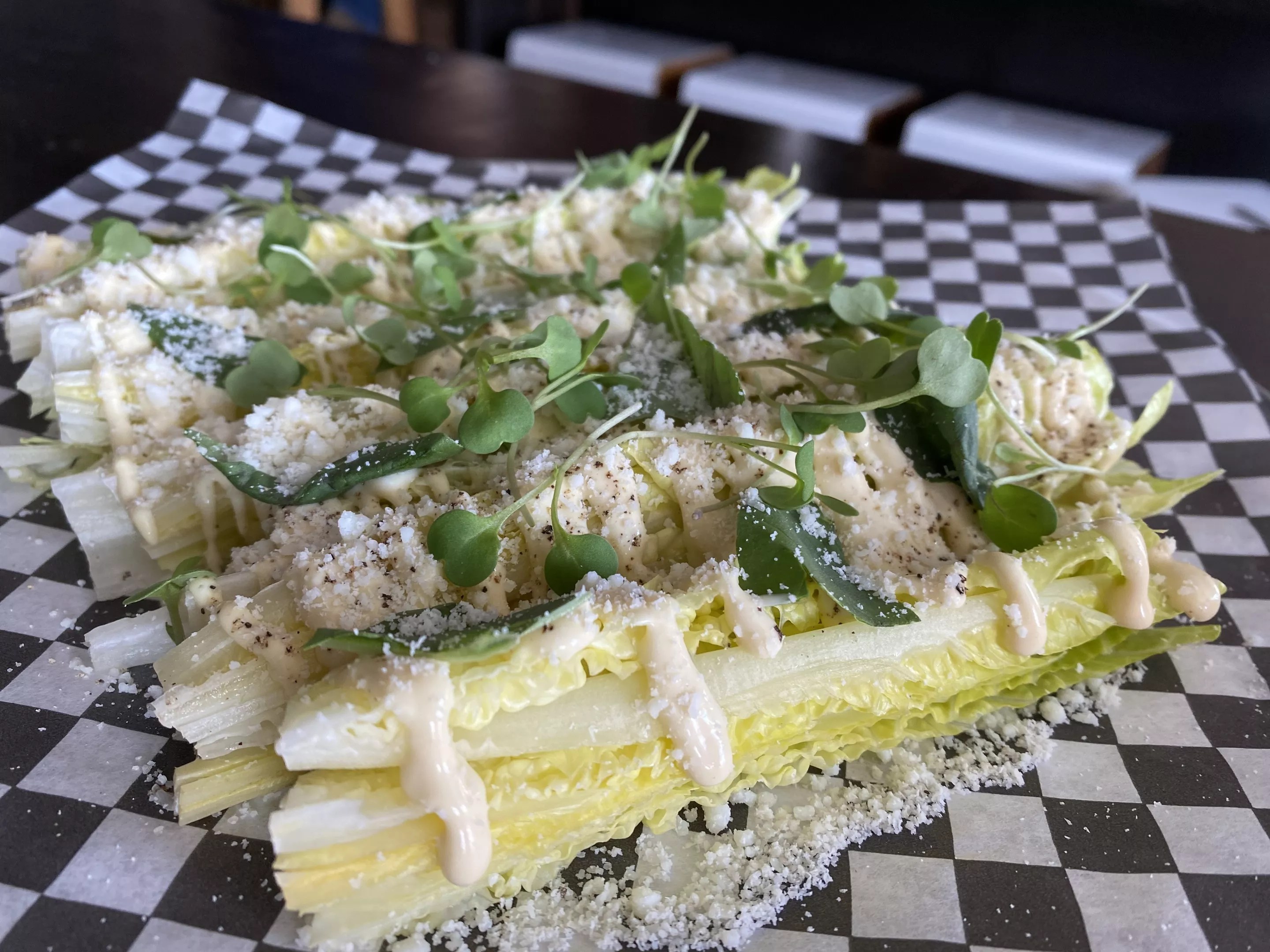 You’ve heard of a hand pie, right? Well, how about a hand salad? That’s one of the amusing appetizers you’ll find on the menu at Gorlami Pizza, which is now open at Avanti Food & Beverage. Gorlami (from an Inglorious Basterds scene featuring Brad Pitt doing his worst Italian impersonation ever) doesn’t call its Caesar-style creation a hand salad, but the baby romaine lettuce is sliced into finger-friendly spears topped with a tangy, cheesy dressing that are just right for a pre-pizza snack. The pies, Neapolitan-adjacent but with a crispier crust, come in seven topping combos plus a kids’ cheese version. Other starters include olive-oil whipped ricotta served with several topping options and sea-salt crackers; avocado and burrata toast; and a couple of meat boards.