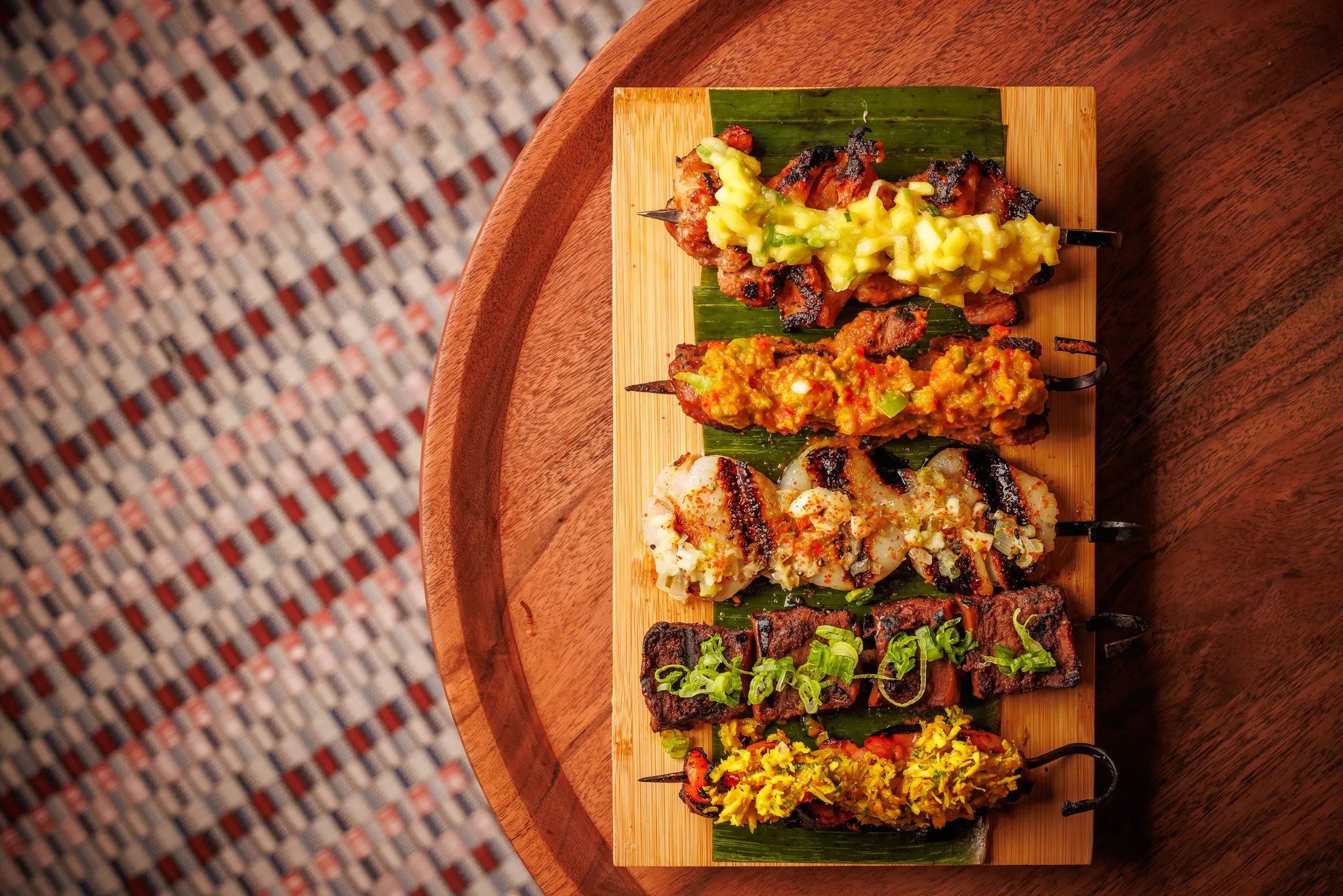 Magna Kainan skewers include eggplant, pork, chicken, diver scallops, and Colorado lamb leg