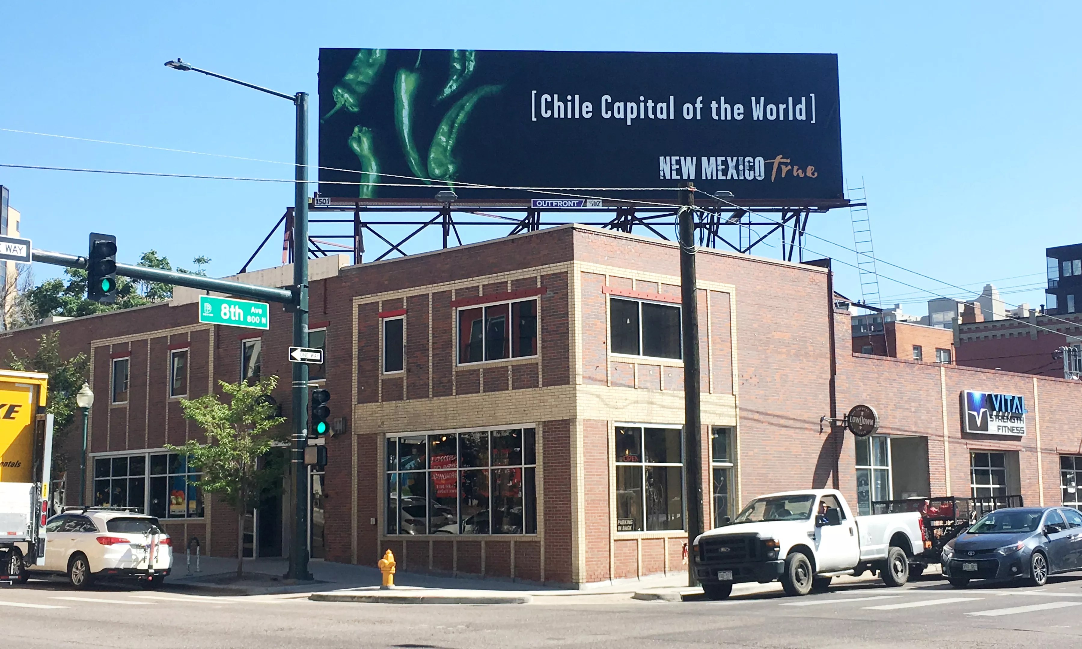 But in the meantime, the Land of Enchantment has taken the fight to the very streets of Denver. A billboard just popped up at the corner of Eighth Avenue and Lincoln Street (on top of a Colorado craft brewery, no less) with the words “Chile Capital of the World” above the “New Mexico True” tourism slogan and logo. Verdant pods spilling onto a black background grace the gigantic ad, the agricultural equivalent of Soviet agitprop during the Cold War.