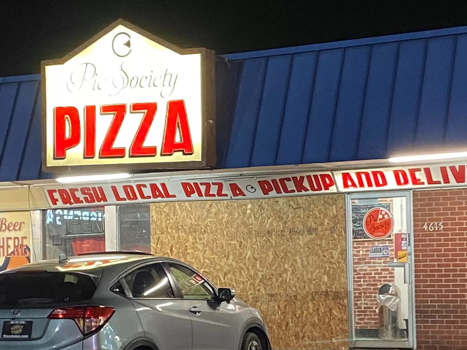 In February, a car crashed into the front of the now-closed Pie Society Pizza.