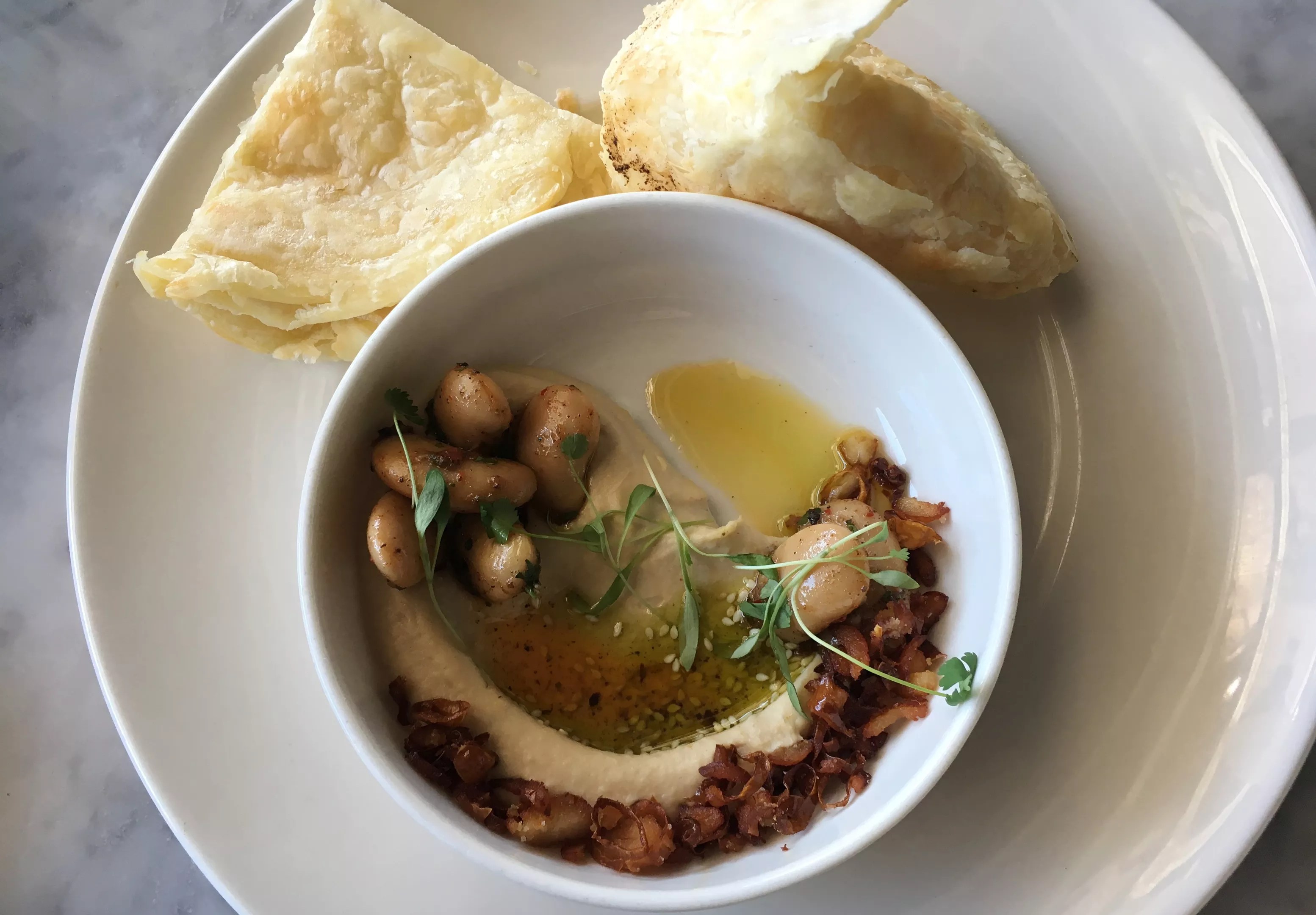 If you’re visiting for lunch, don’t miss the Parisienne ham sandwich, made with a generous helping of pork rillettes and slathered in Jasper Hill Farm Harbison cheese sauce. H & D specializes in whiskey, offering hundreds by the bottle plus five single-barrel options (picked specifically for the restaurant) poured on tap. You can order a flight of all five, four of which are made in Colorado, or let the bar team guide you to the right whiskey to match your mood and food. Mister Tuna’s hummus is made with gigante beans, which are also served whole alongside the dip. Mark Antonation Peewee potatoes with pickled onion, wild ramps and potato fondue. Mark Antonation