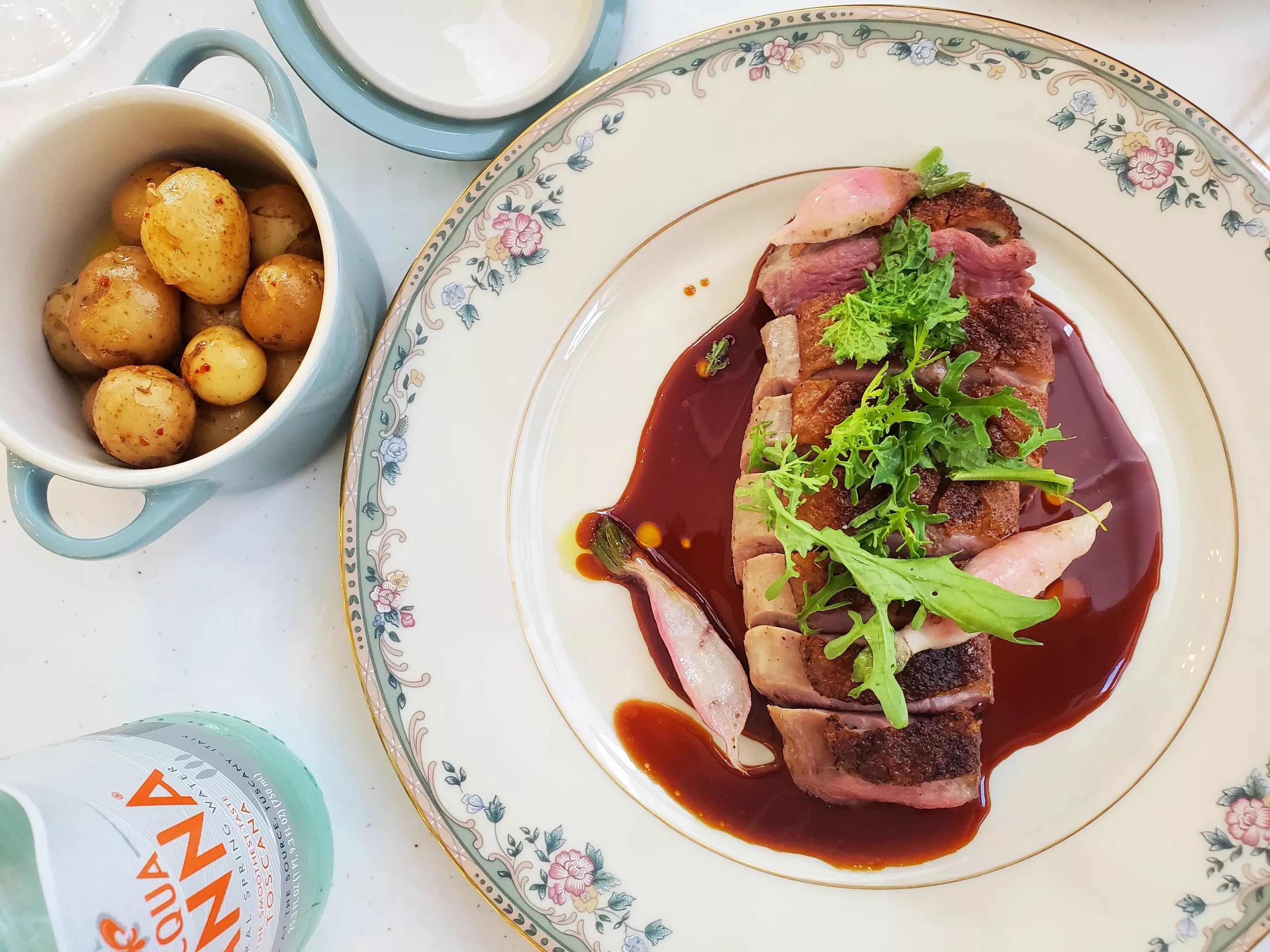 But most diners would never notice those under-the-radar points, especially with a design that’s so distractingly elegant – though not in a stiff, white-tablecloth kind of way. The space, which was formerly home to the restaurant There…, has been transformed beyond recognition – in a very good way. The clean, white decor with pops of pastel and a mix of modern and vintage is inviting and transportive. Small vases of flowers on each table add a romantic touch, as do the mismatched flatware and floral antique plates that Lillian collected over the past year and a half.