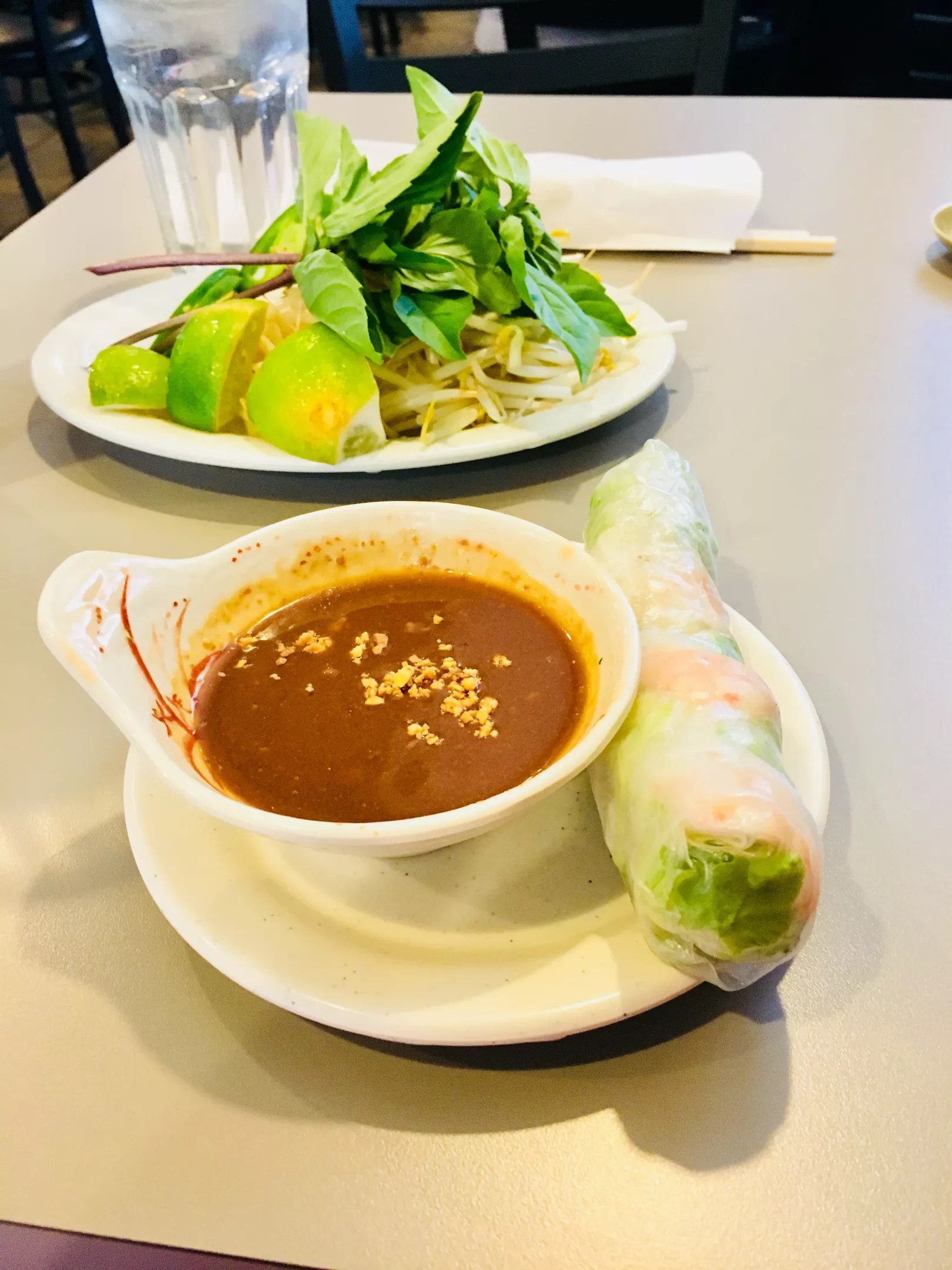 I’d ordered the dine-in lunch special that includes a medium-sized choice pho, a spring roll and a fountain drink for $9.95. The No. 8 pho contains five different cuts of tender, succulent meat: flank, rare steak, brisket, tripe and tendon. I allowed the thinly sliced raw steak, flank and brisket to soak up the beefy broth while I slurped for a while, then dug in. Like the broth, the cooked meats tasted like they’d been simmering for a lengthy amount of time. The steak, brisket and flank were fall-apart tender, and the tripe and tendon added some texture and interest to the soup. Since the meats weren’t tough, I thankfully avoided that embarrassing moment where I look like a carnivorous dinosaur thrashing my head from side to side in an attempt to rip off an appropriately-sized bite from a dry rubbery hunk of meat held in my chopsticks, as I have in some of my past pho experiences.