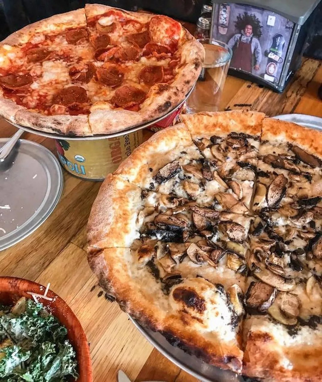 The menu comprises mostly organic, local, seasonal and housemade ingredients for starters, salads, pizzas and desserts. But the thin, New York-style pizzas are anything but basic. Customers start with a wide variety of sauces when building a pie: marinara, red sauce, barbecue sauce, garlic butter, olive oil and pesto. While dairy-free guests are usually delighted with even one dairy-free cheese option, here there are several, including cashew mozzarella, smoked cashew mozzarella, housemade ricotta and a mozzarella blend.