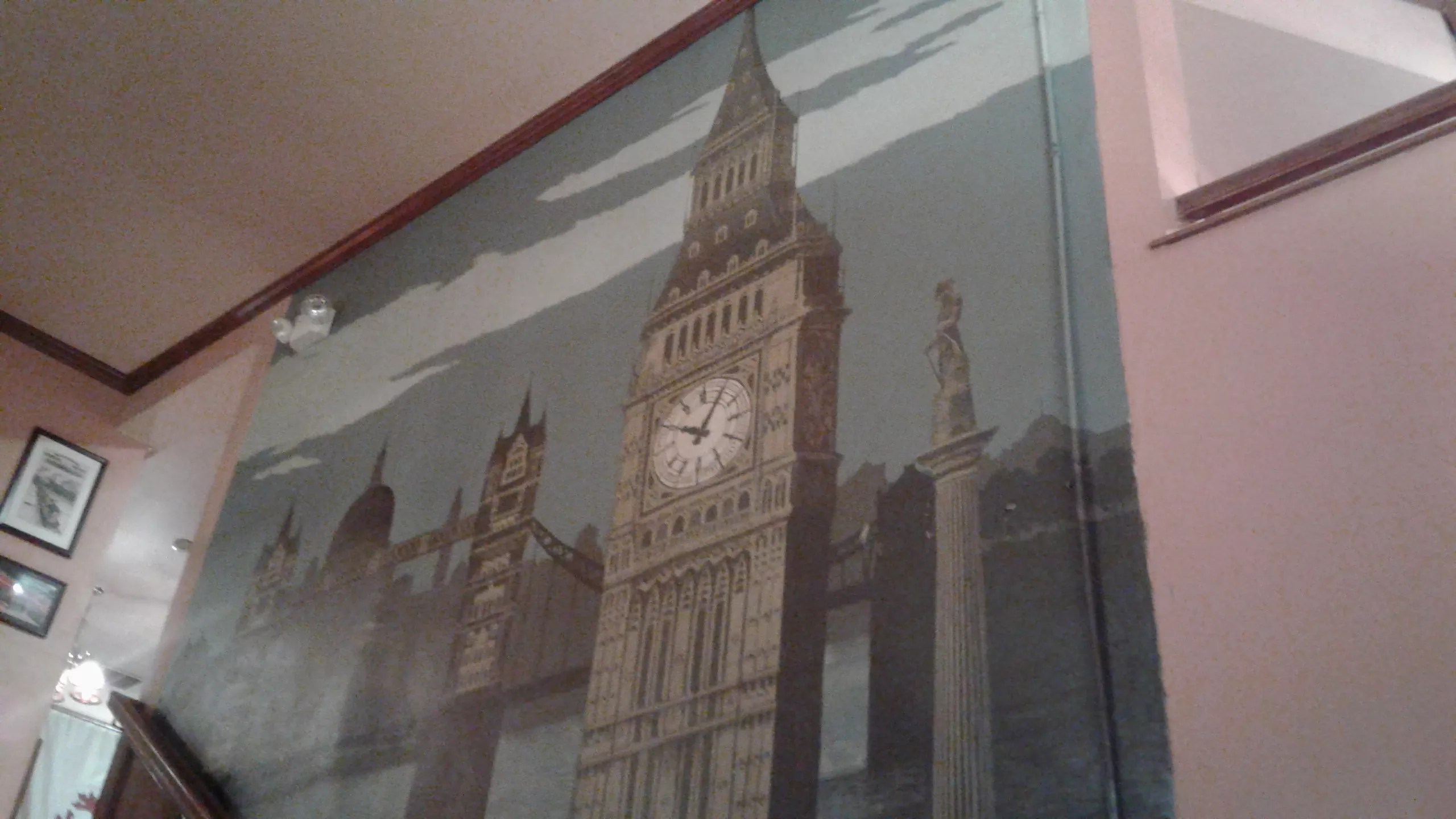 This scene on the wall in the dining room at Pints Pub transports patrons to London.
