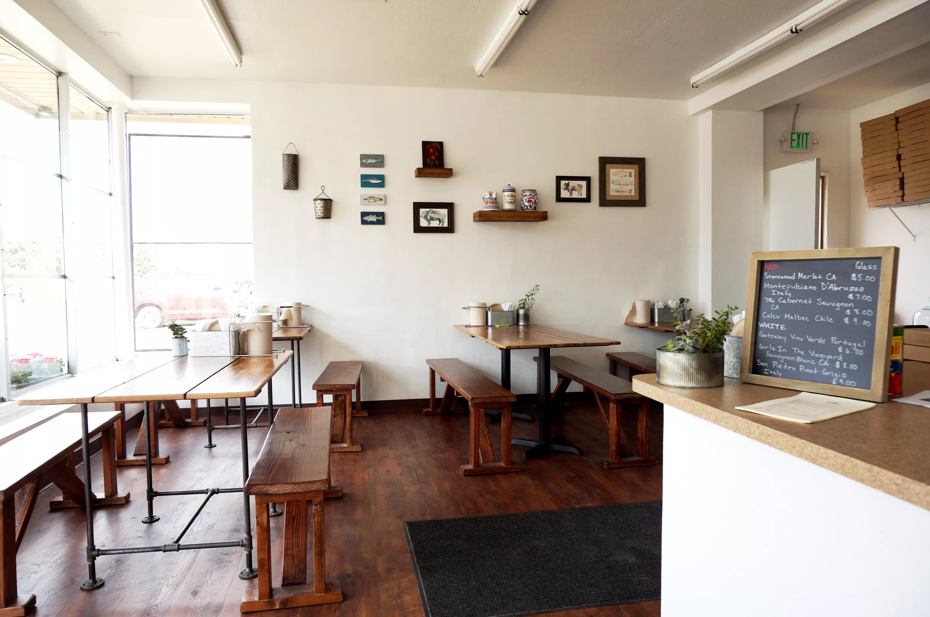 When the chef decided he wanted to open his own pizzeria, he looked all over the metro area for an underserved neighborhood with a good rent price. He ended up close to his home in Denver’s Harvey Park neighborhood — and he also ended up buying rather than renting, because the building seemed perfect for his needs and the price was right. After barely managing to squeeze his pizza oven through the old liquor-store double doors, he refurbished the interior and replaced the front door. The result is a spartan but sunny dining room warmed by wooden benches and live plants on every table.