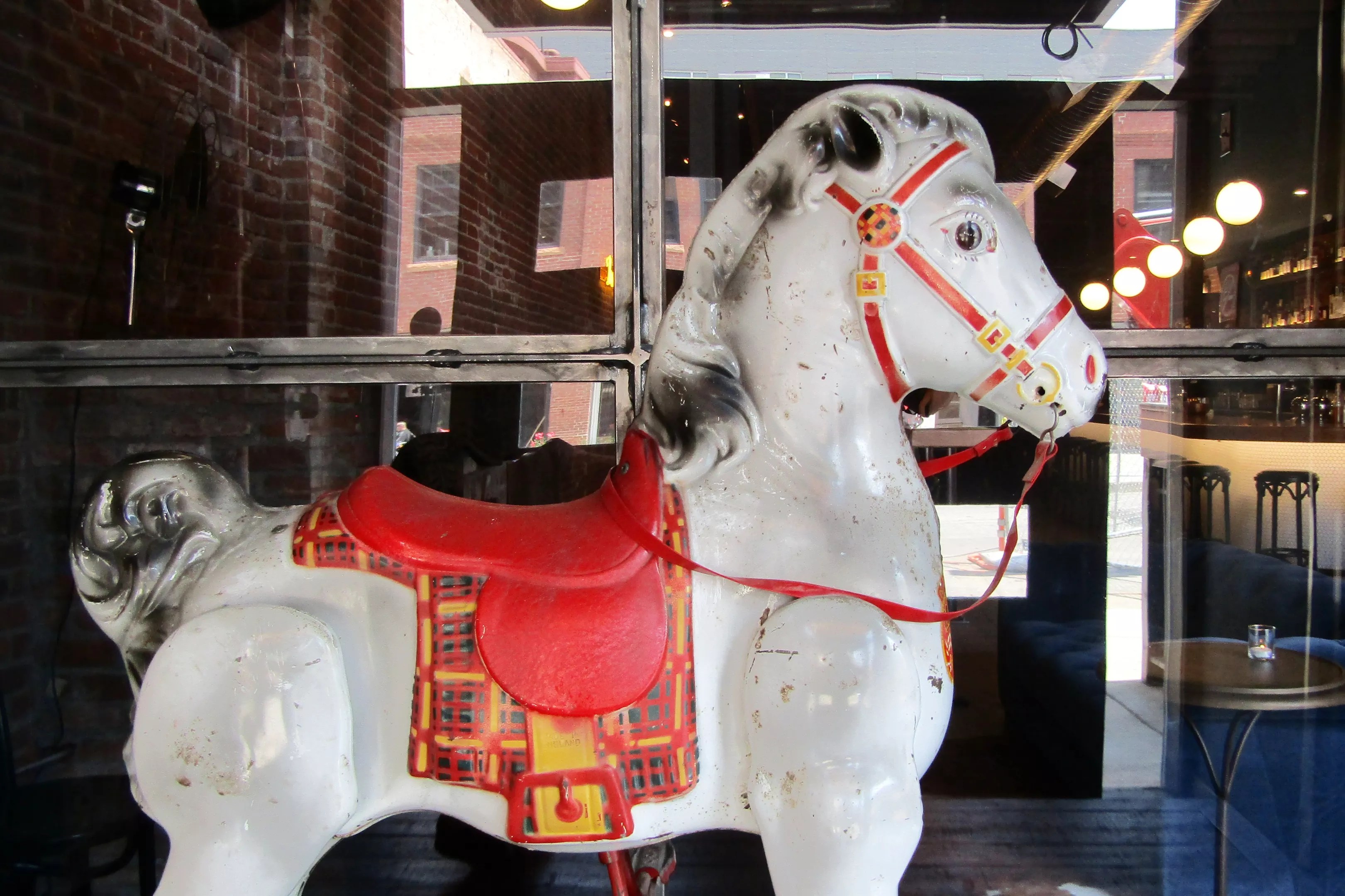 Most prominently, pony references abound – in the name, in the antique hobby horse in the entryway and on the cocktail menu, which sports a drink called Stay Golden, a sly allusion to the character Ponyboy in S.E. Hinton’s The Outsiders.