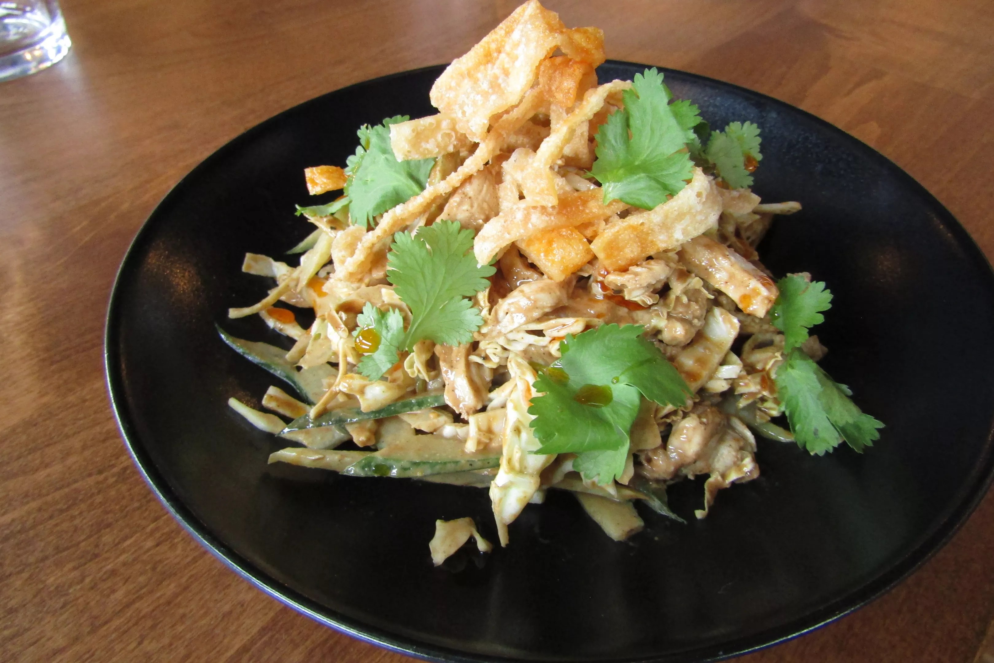 Bang bang chicken salad with sesame butter and Sichuan peppercorns.