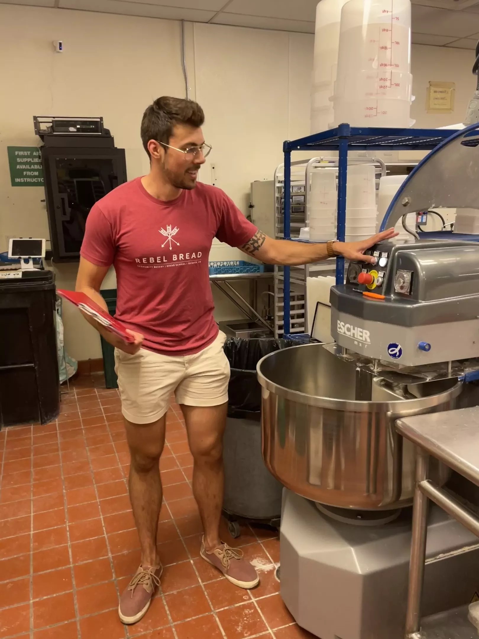 Zach Martinucci shows off Esther the mixer, which can mix up to 100 loaves’ worth of dough at a time.