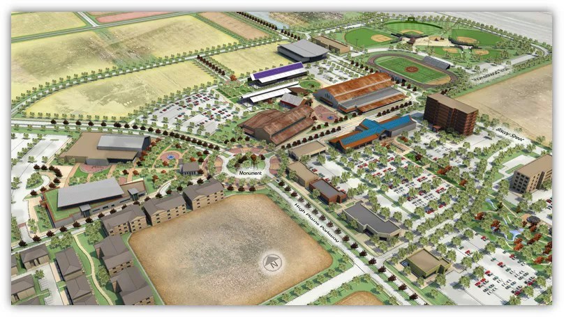 Conceptual image of the STEAD School campus and Reunion Center facilities.