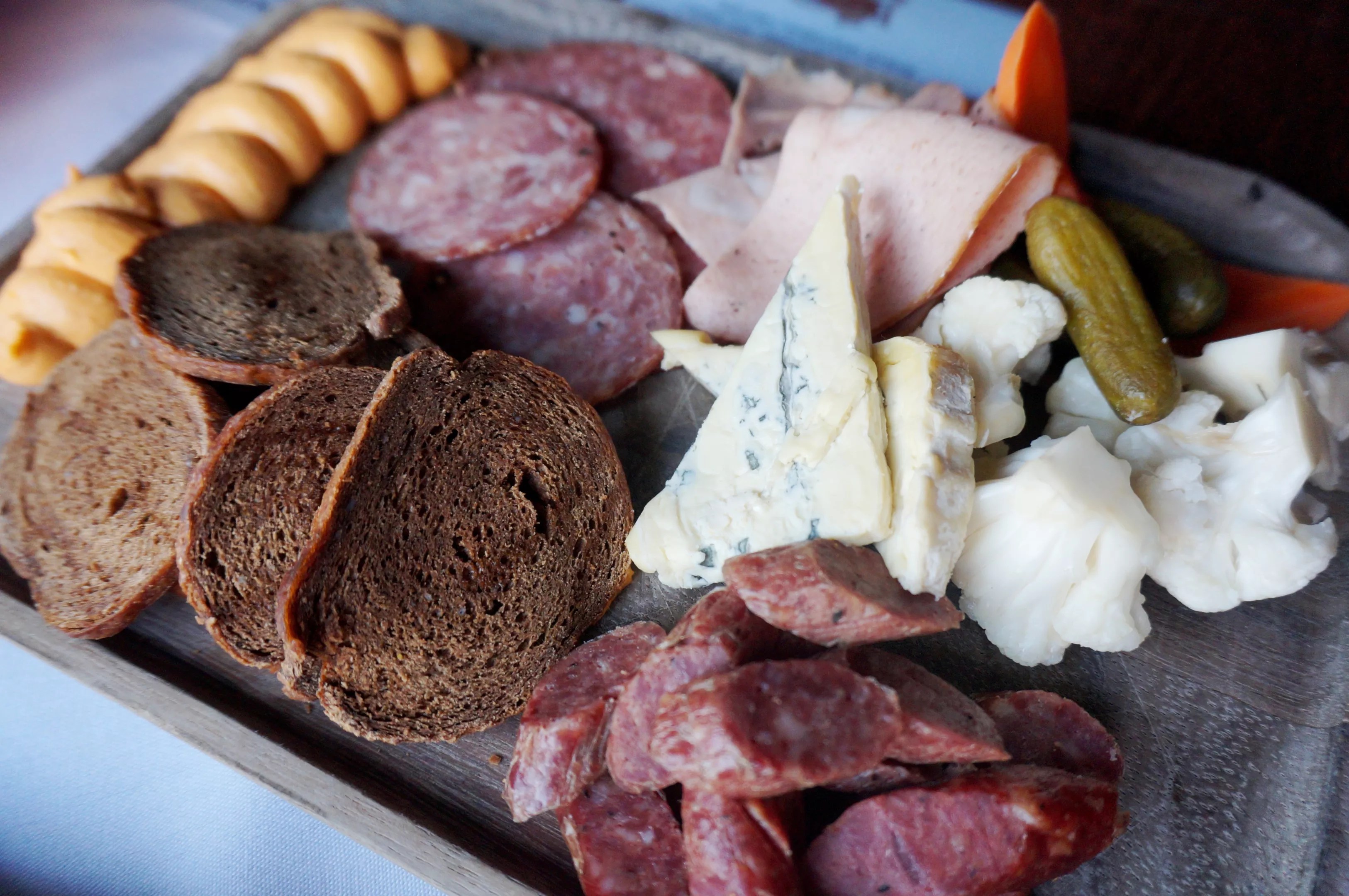 The Milwaukee platter. The orange squiggle on the left is obatzda. Mark Antonation
