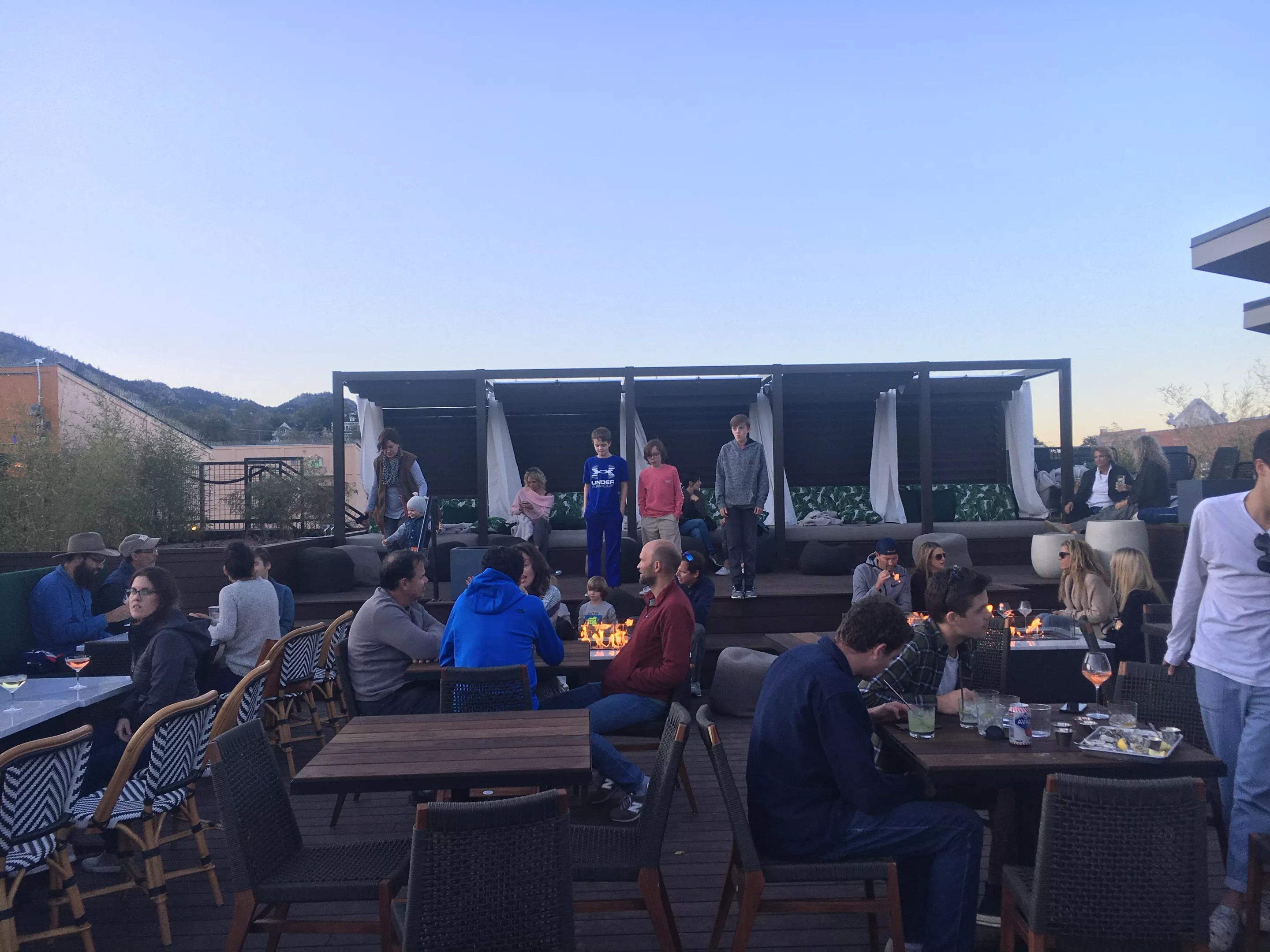 Private “cabanas” on the rooftop patio can be reserved if you want personalized service from each vendor inside the hall.