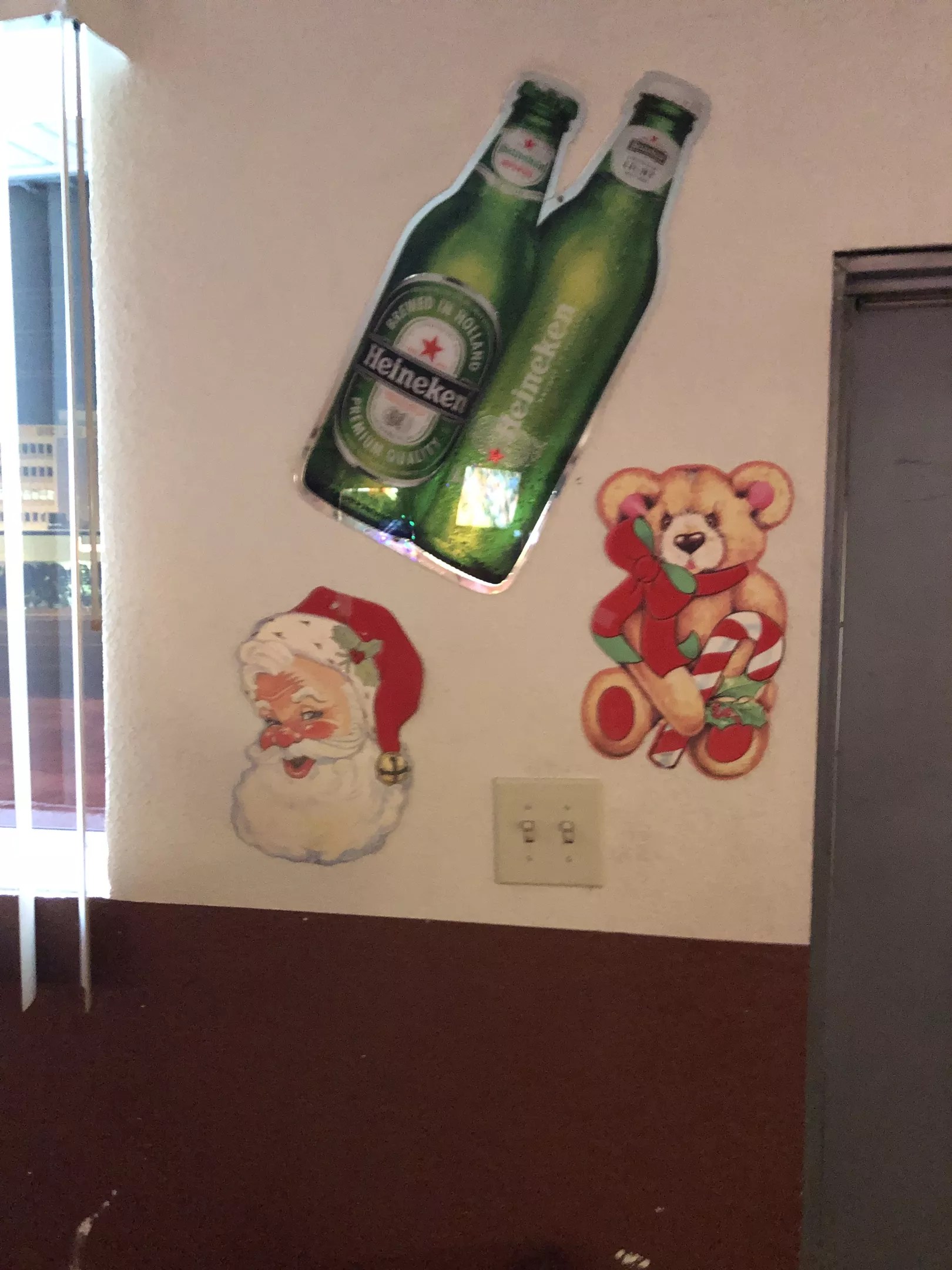 Even before I saw the sign, I already had a good feeling about the place; it’s a very welcoming sort of spot. The bar is indeed a dive in the sense that it’s homey and full of ’70s-era decor, including outstanding old-school (or maybe just old) Christmas decorations, the kind you had as a kid: bears and snowmen and candy canes designed to be put on the wall. There was also a live Christmas tree, which impressed me if only because I have not yet reached the level of adulting where I can handle acquiring a real tree and keeping it alive.