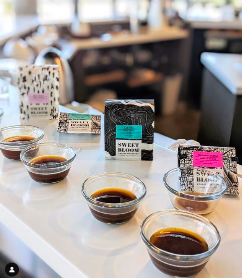 Scenes from a Friday afternoon coffee cupping, which are open to the public.