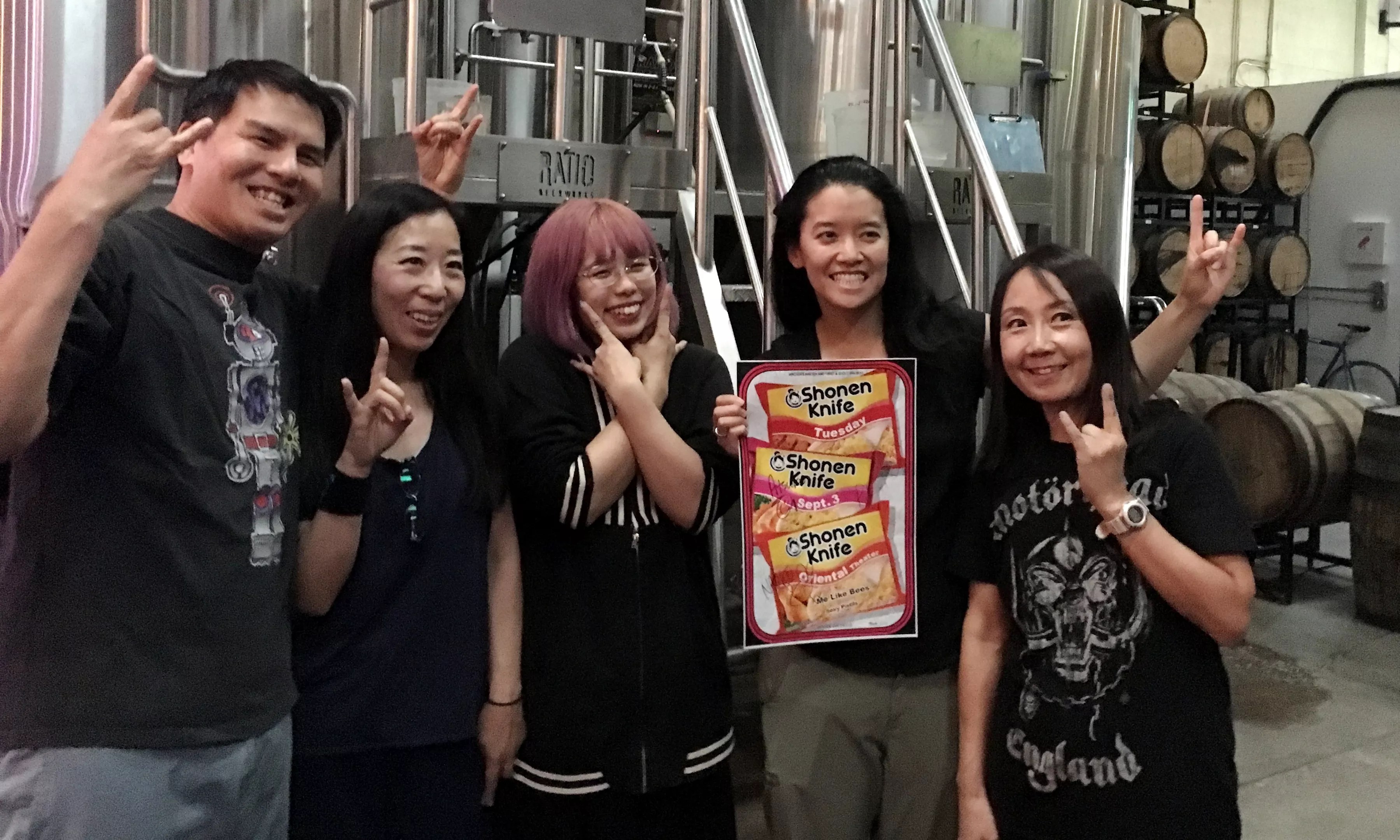 Guitarist Naoko Yamano, bassist Atsuko Yamano and drummer Risa Kawano showed up promptly at 6:30 p.m. at Ratio Beerworks, where about two dozen fans, many sporting a little gray on top, greeted them with album covers to be signed, photos to be snapped and hungry bellies waiting to be filled. Osaka Ramen ladled up pork and chicken miso ramen loaded with pulled pork, corn, whipped butter (yes, that’s a thing), poached eggs and spinach. Ratio paired the noodle soup with a ginger-lime-coconut saison, though the bandmembers stuck with water during their visit.