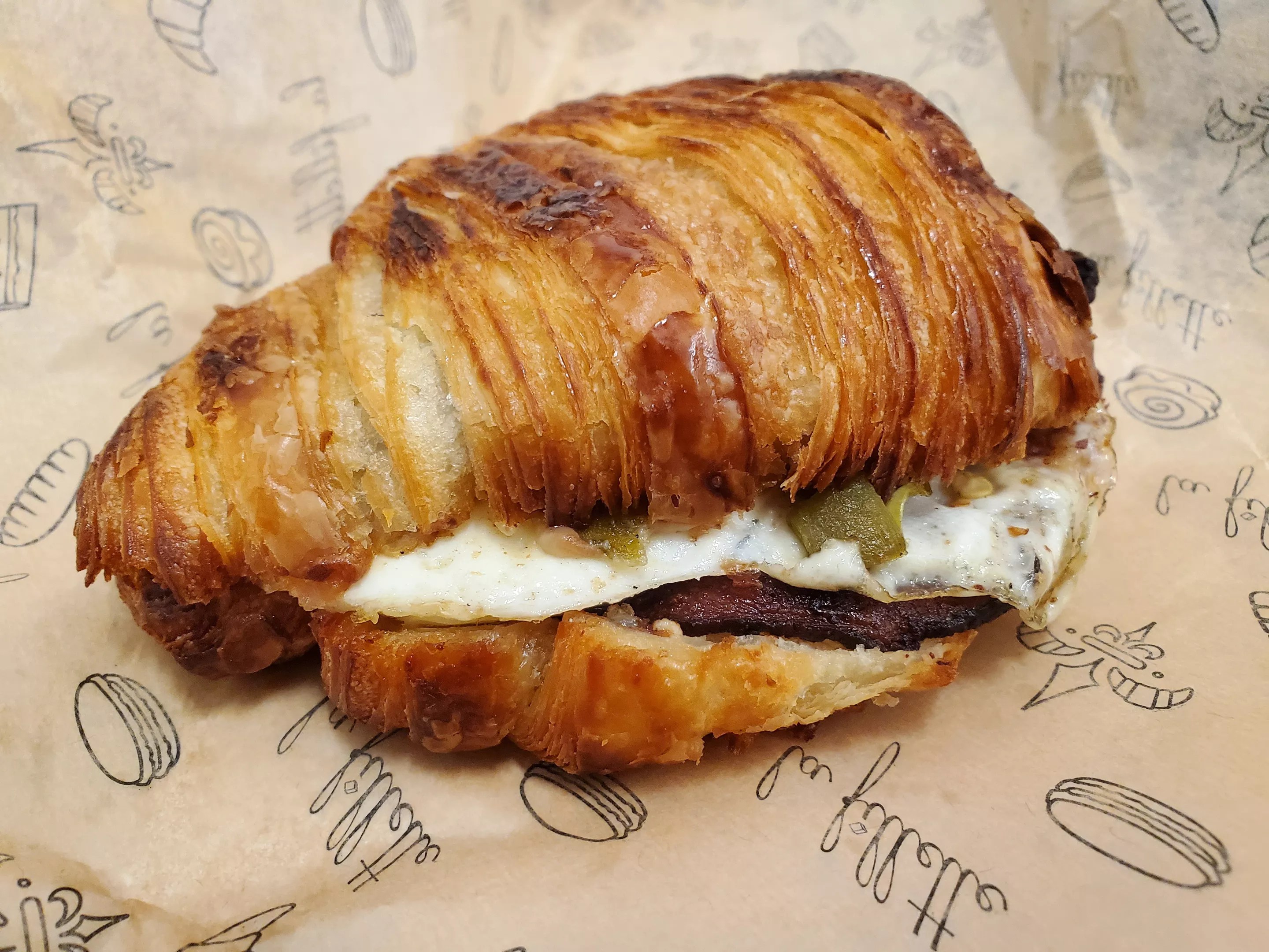 Where the breakfast sandwich goes from there is totally up to you, starting with meat: the standard ham, sausage and a thick-cut bacon with a nice bite, but you can also opt for corned beef or duck confit. Or you can leave off the meat and pick an extra veggie or cheese.