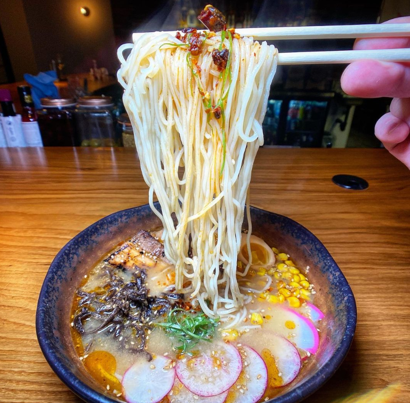 Osaka Ramen, chef Jeff Osaka’s RiNo ramen house, regularly debuts new seasonal selections, including a fall favorite, a green chile-spiked spin on the dish. Right now, though, you can get a taste of its winter addition: pho-style brisket ramen, made with brisket, bean sprouts, mushrooms, basil, negi, chicken broth and brisket tare, pho spices and a soft egg. Los Chingones/Instagram For a totally non-traditional take on ramen, head to the RiNo location of restaurateur Troy Guard’s Los Chingones. Its Mexican ramen has a broth that cooks for twelve hours and is brimming with thick udon noodles, chicken thigh or pork shoulder, hon shimeji mushrooms, cabbage, shishito pepper, jalapeños, scallions, radishes and crispy fried garlic. Molly Martin It’s been three months since we got a first taste of chef Edwin Zoe’s 16th Street Mall eatery Dragonfly Noodle, but we’re still thinking about one of its many ramen selections, which comes with two tender ribs perched atop a tangle of fresh, bouncy noodles in a tonkotsu broth. The smokiness isn’t overwhelming; while it doesn’t taste like you’re eating a barbecue/ramen mashup, the smoke does add an unexpected twist to the dish.
