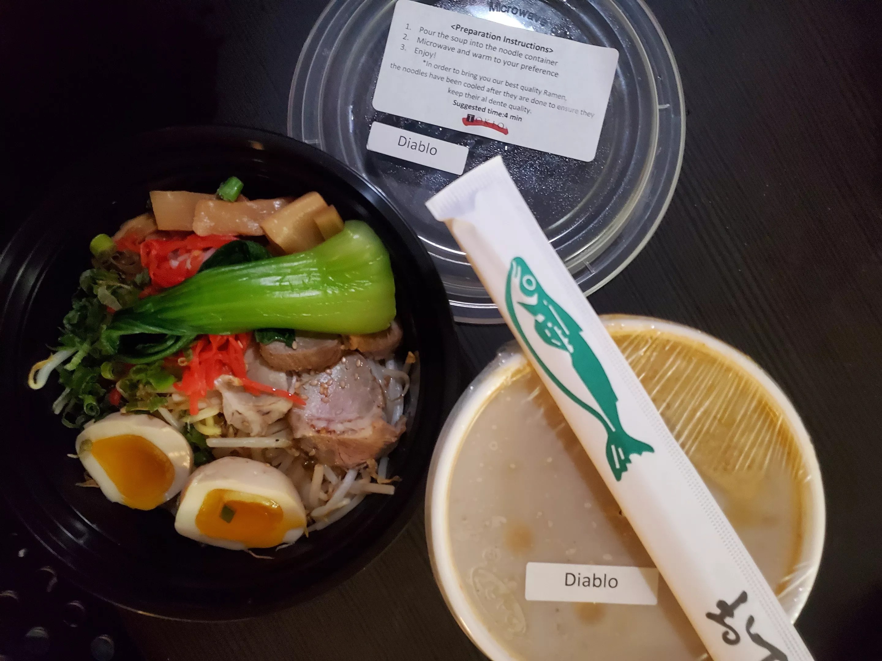 Tokio came through on a cold night with its smartly packaged delivery ramen. The noodles and all the goodies, including a jammy soy egg, tender-crisp bok choy and cha syu pork were in one bowl, with the creamy cheddar and jack cheese-spiked broth for the Cremoso Diablo ramen packaged separately. It was easy to combine them and heat for a few minutes, which left everything tasting as fresh as it does at the restaurant.