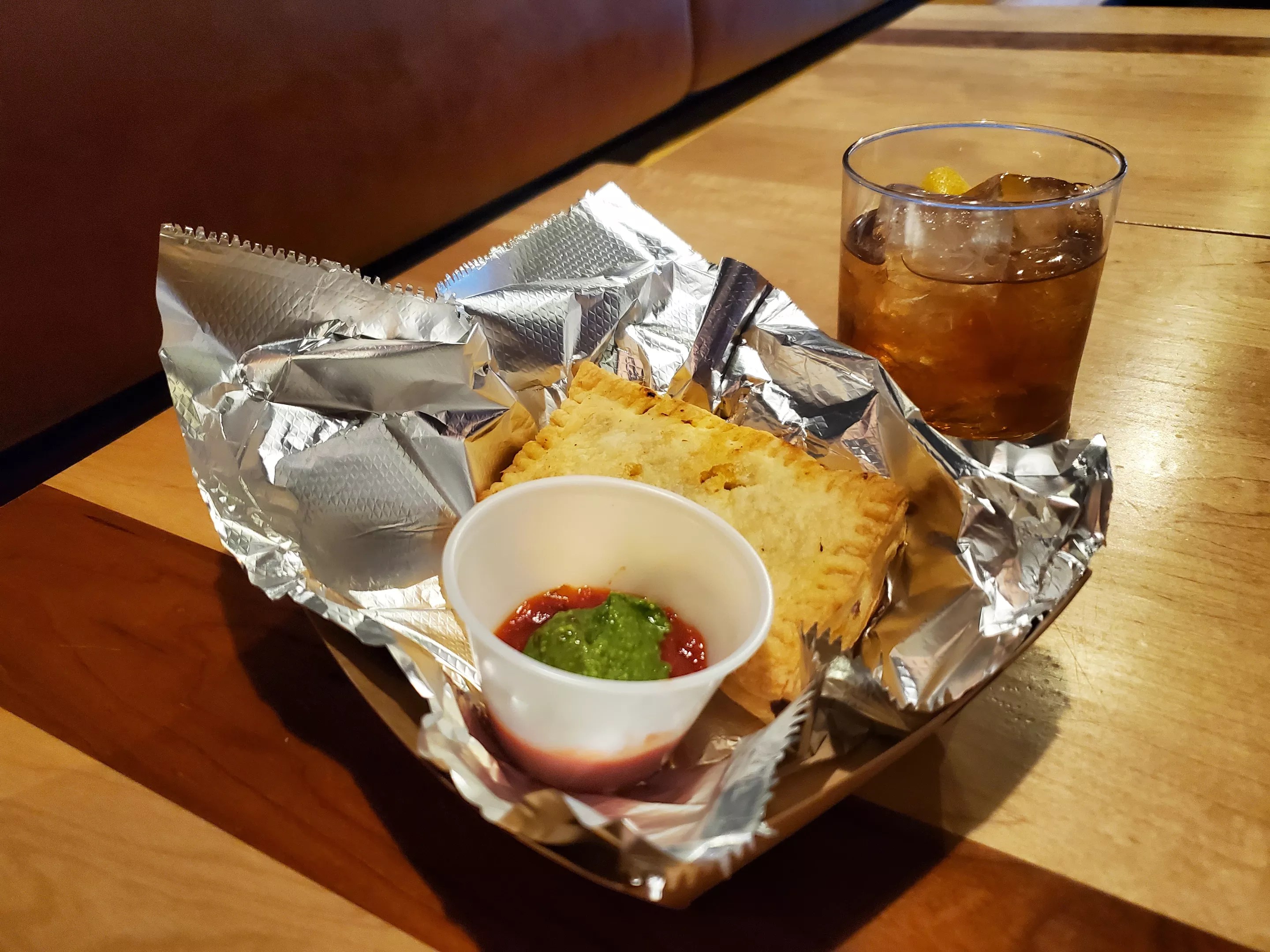 T.S.R. (This Shit Rules), which opened inside American Bonded in October, recently added a few new menu items, including the ultimate snack to accompany late-night drinking: a grown-up version of Hot Pockets. Made with puff pastry, stuffed with your choice of cheese or pepperoni pizza filling and served with a pesto and marinara dipping sauce, it hits all the right nostalgic notes.