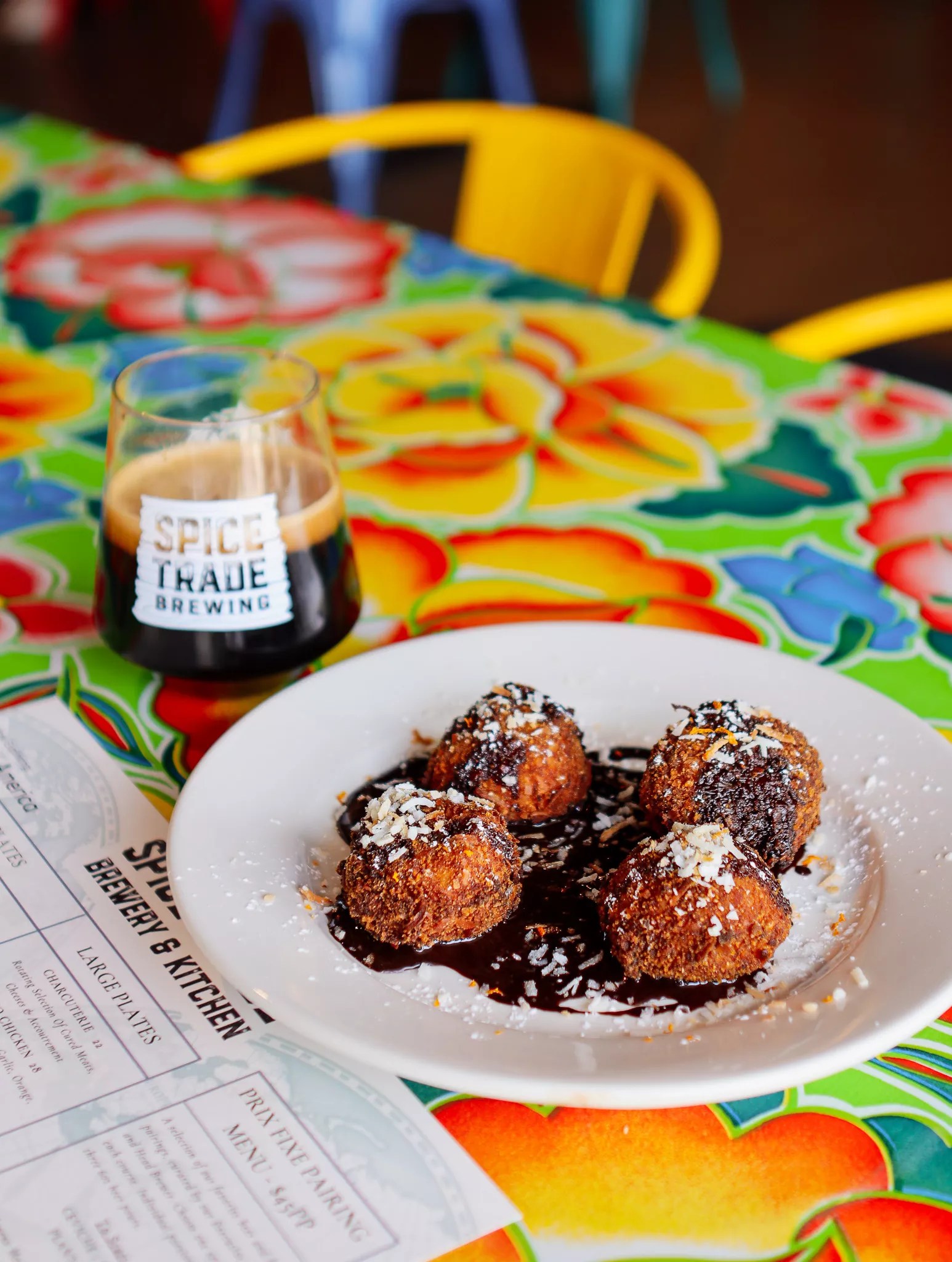 Tres Leches arancini paired with King Montezuma Stout