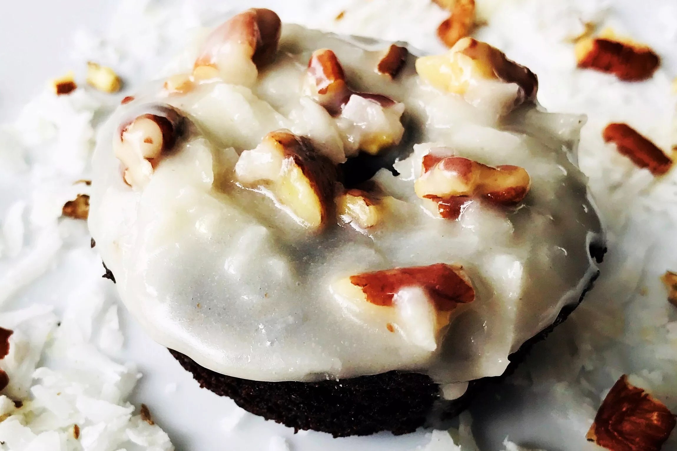 The German chocolate cake is one of the most popular vegan doughnuts.